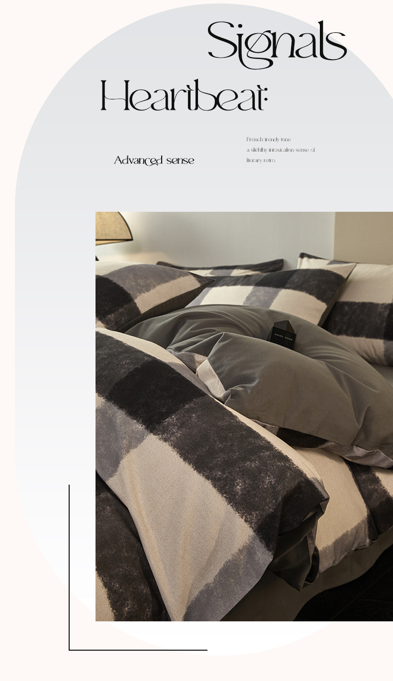 雅居纺家纺 2024新款全棉印花磨毛四件套 灰大格
