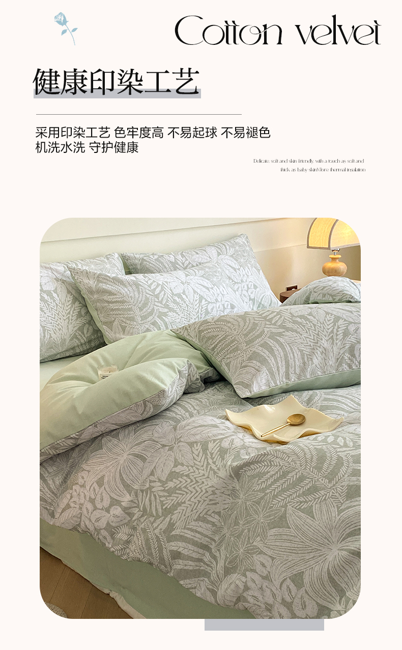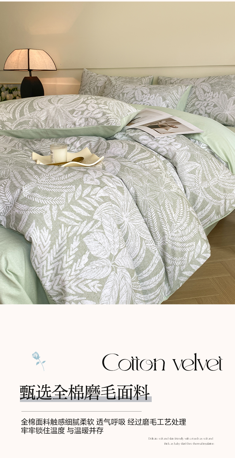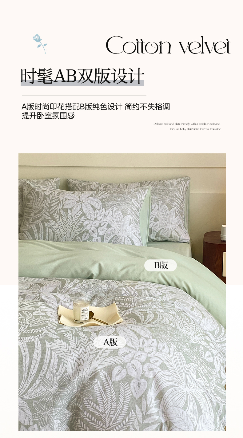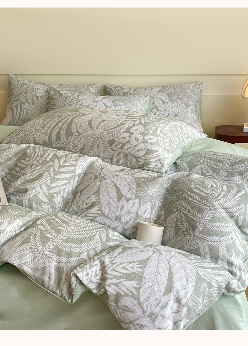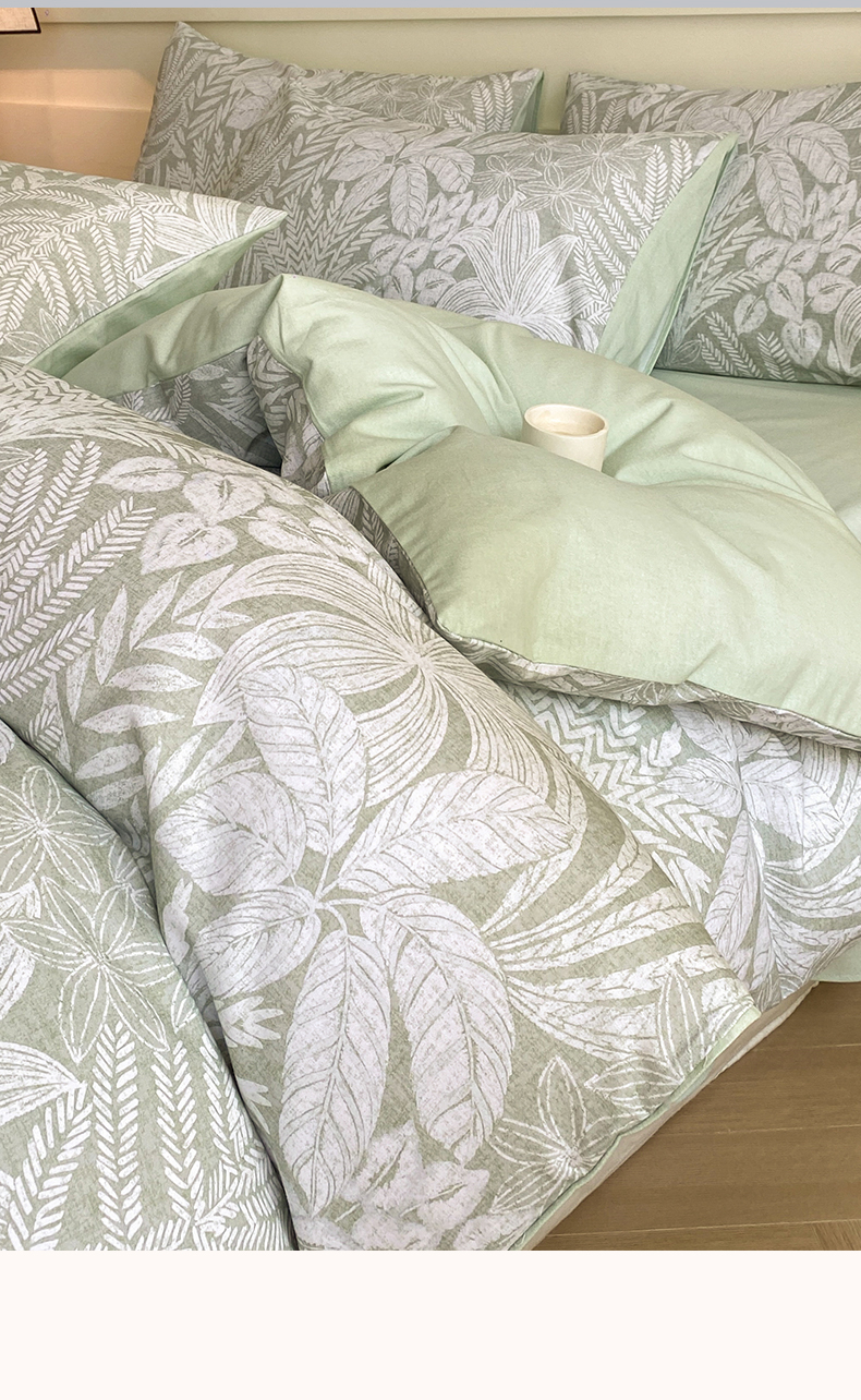 雅居纺家纺 2024新款全棉印花磨毛四件套 热带雨林