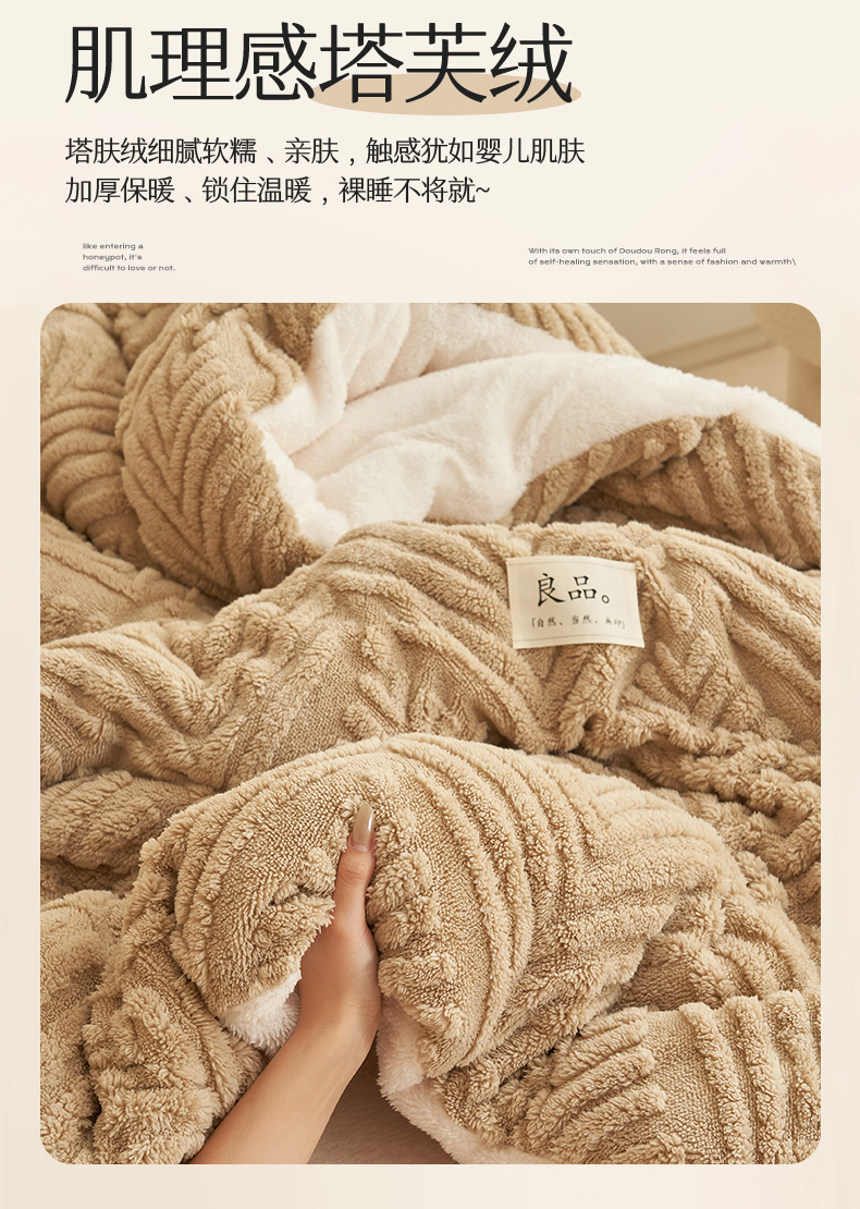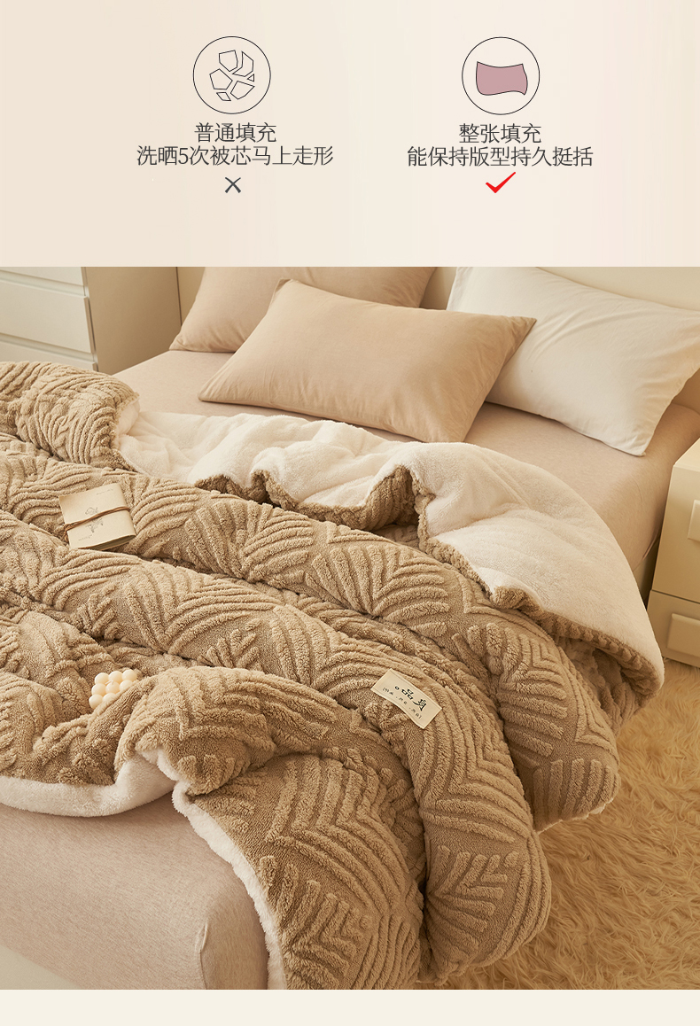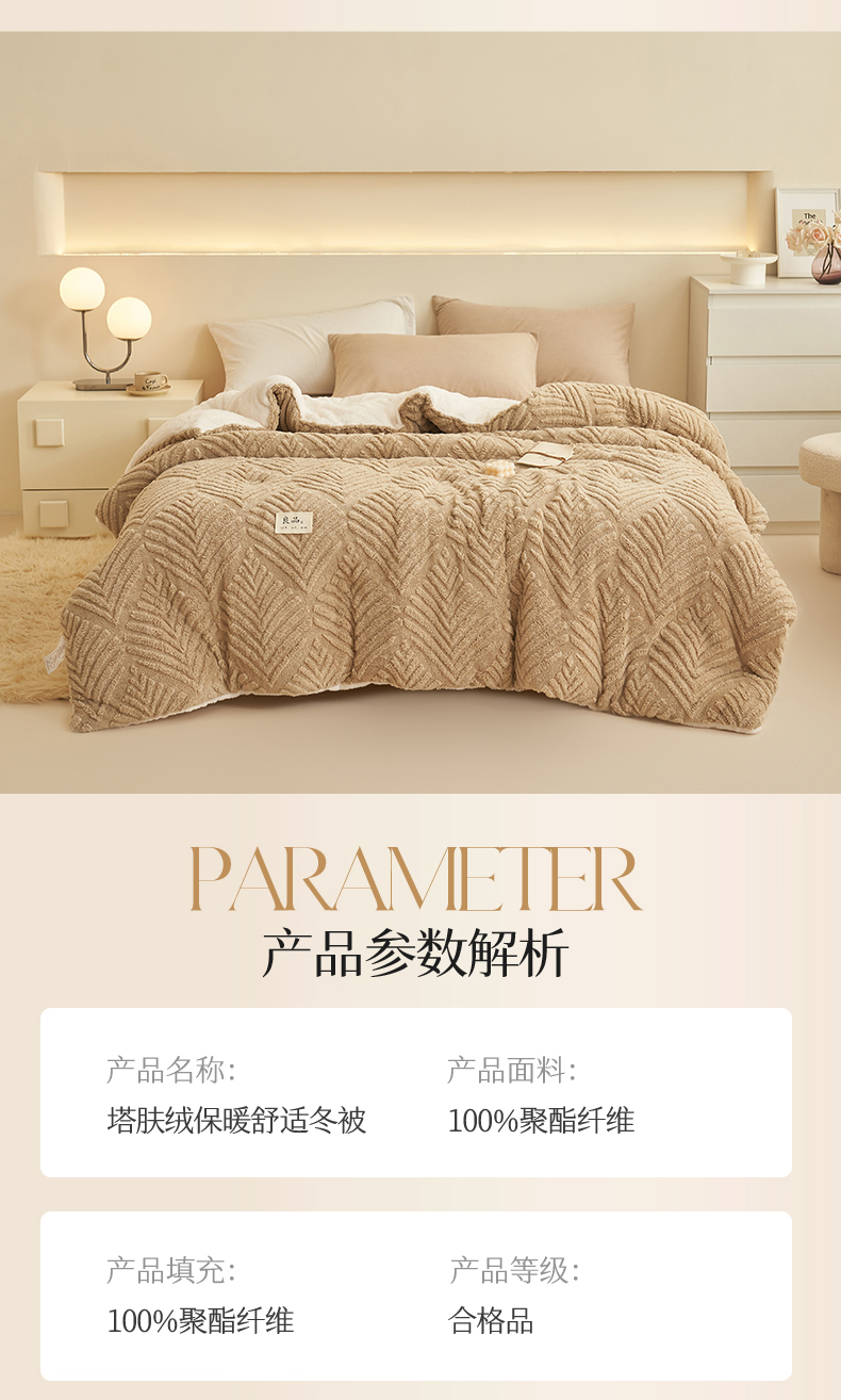 • 91家纺网 家纺一手货源 找家纺 2024新品塔肤绒保暖舒适冬被子被芯 枫叶-驼