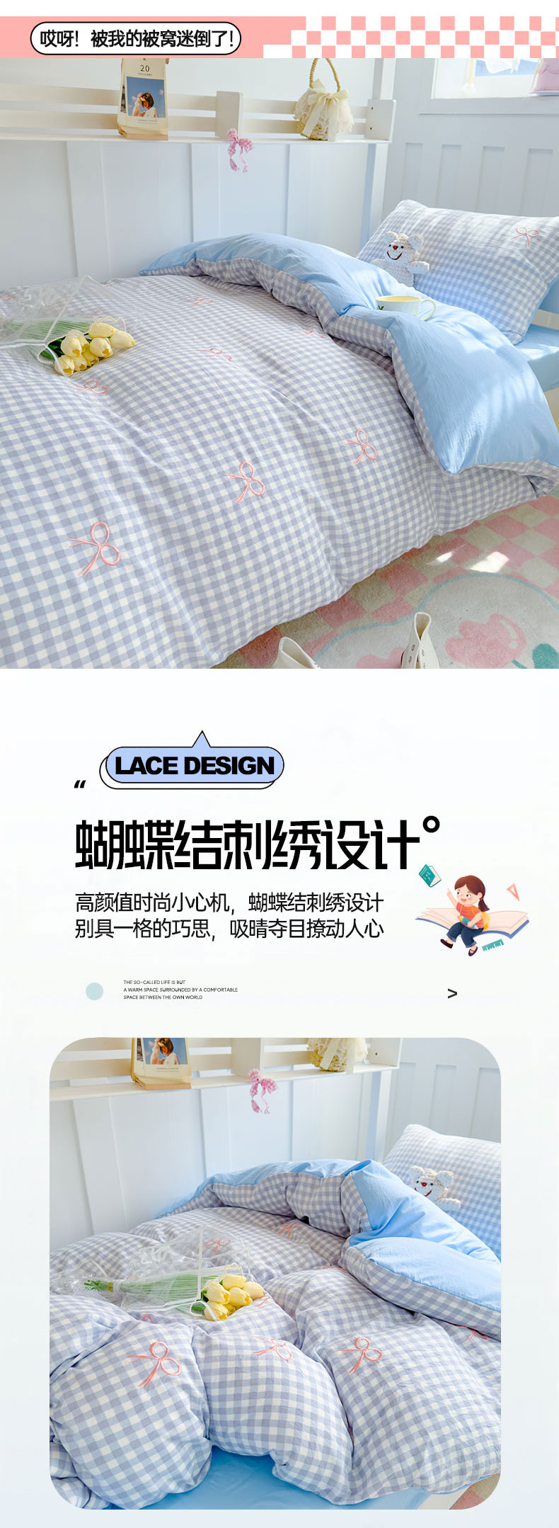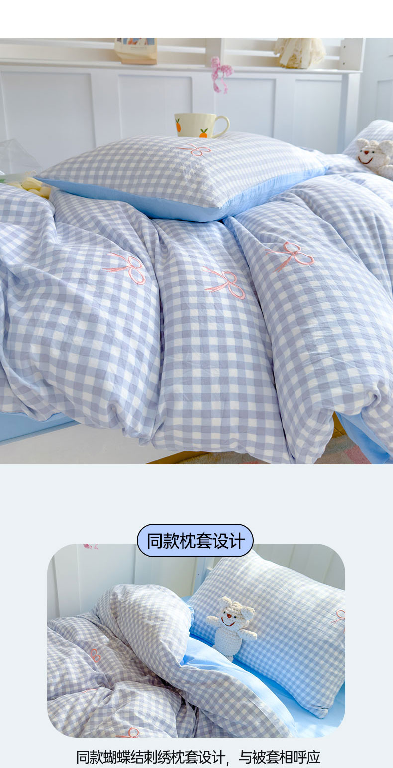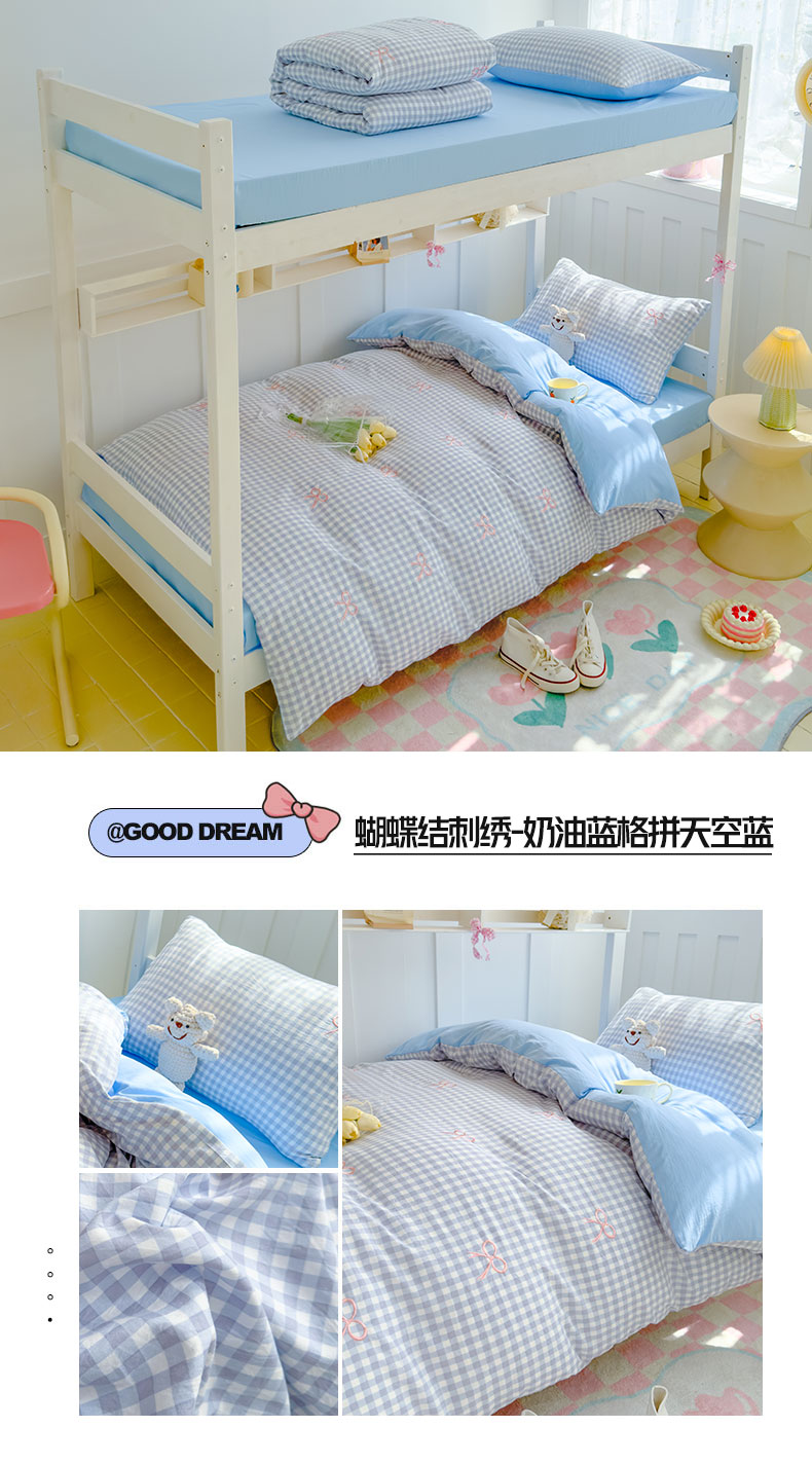 当前位置: 91家纺网 > 商品网购 > 床品套件 > 四件套 > 其它四件套 > 2025新款A类水洗双层纱蝴蝶结刺绣三件套四件套-学生床 蝴蝶结刺绣-奶油蓝格拼天空蓝