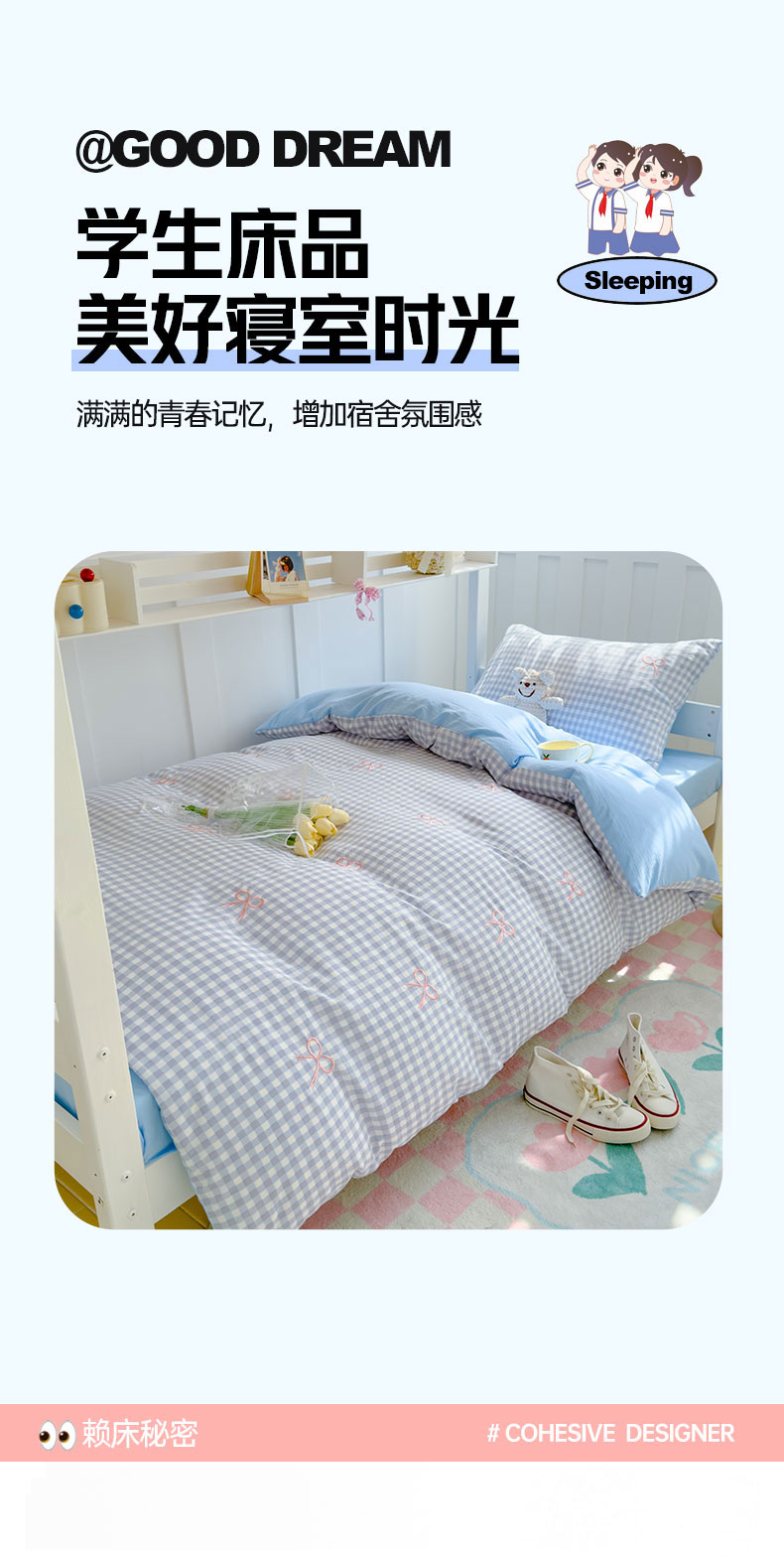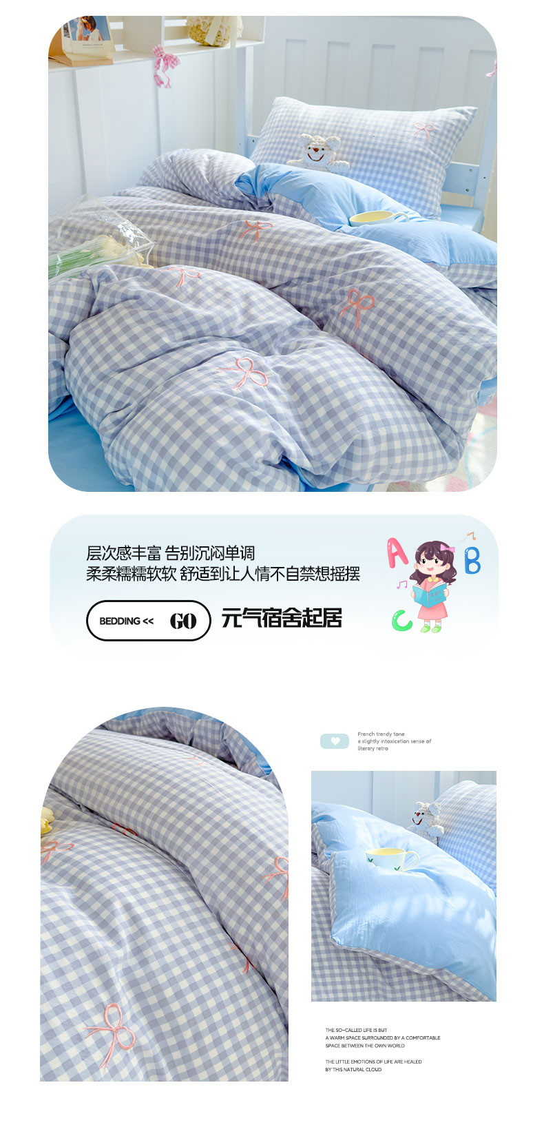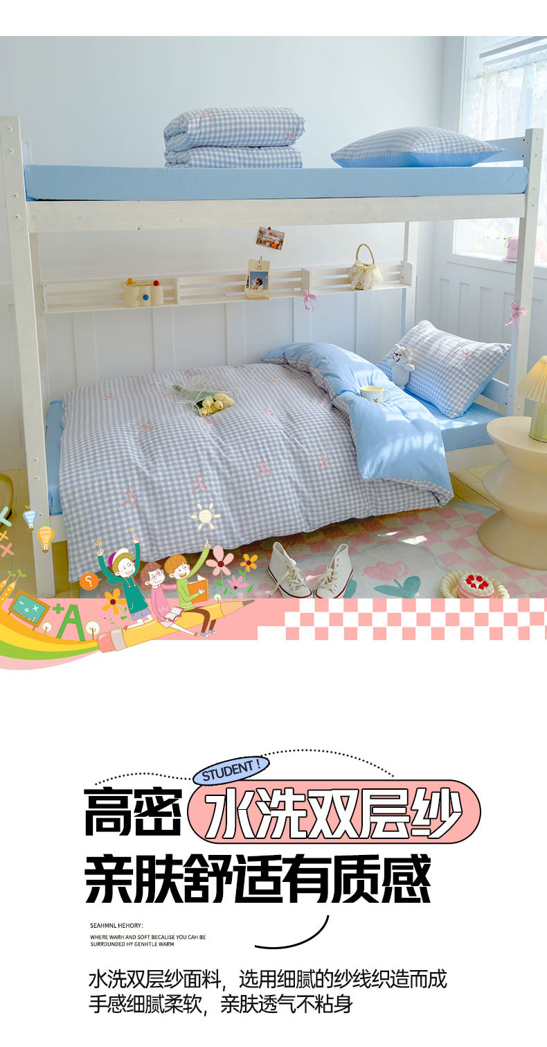 当前位置: 91家纺网 > 商品网购 > 床品套件 > 四件套 > 其它四件套 > 2025新款A类水洗双层纱蝴蝶结刺绣三件套四件套-学生床 蝴蝶结刺绣-奶油蓝格拼天空蓝