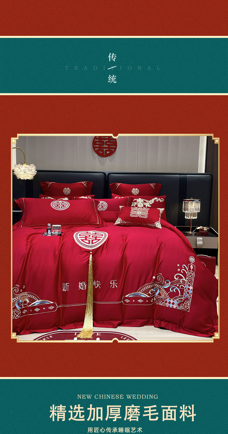 当前位置: 91家纺网 > 商品网购 > 床品套件 > 四件套 > 婚庆四件套 > 用心 2024新款亲肤加厚磨毛新中式婚庆四件套多件套 相爱