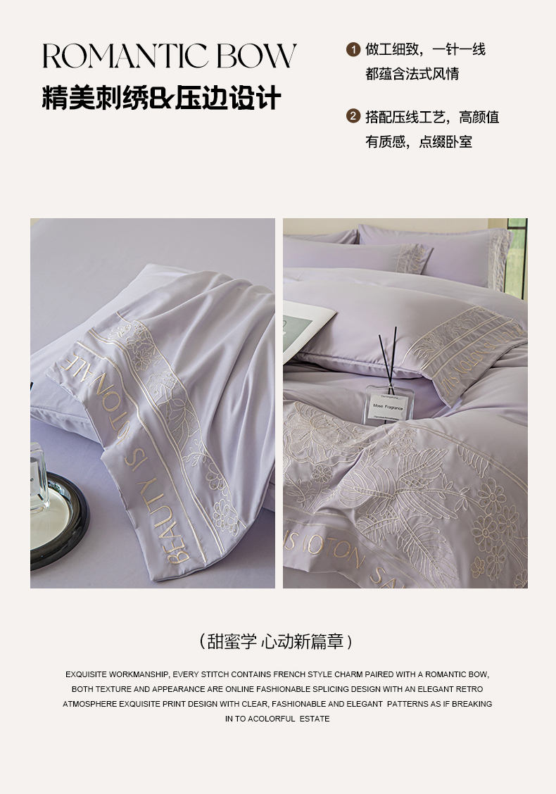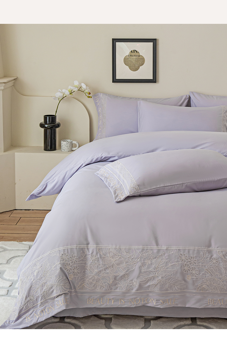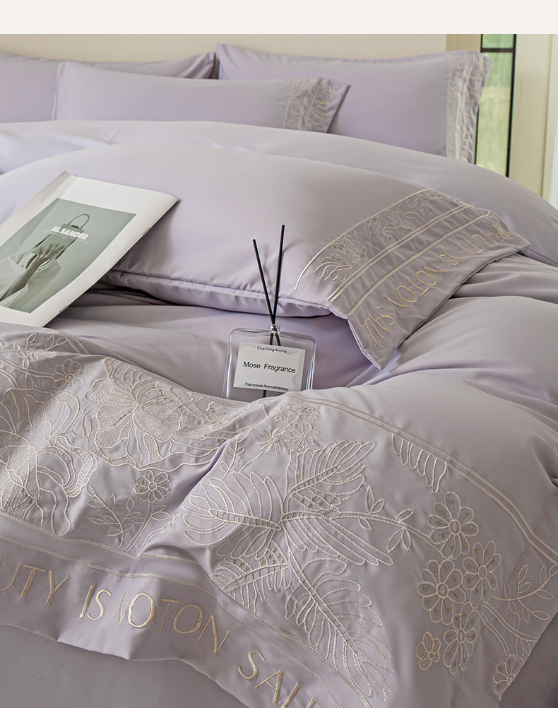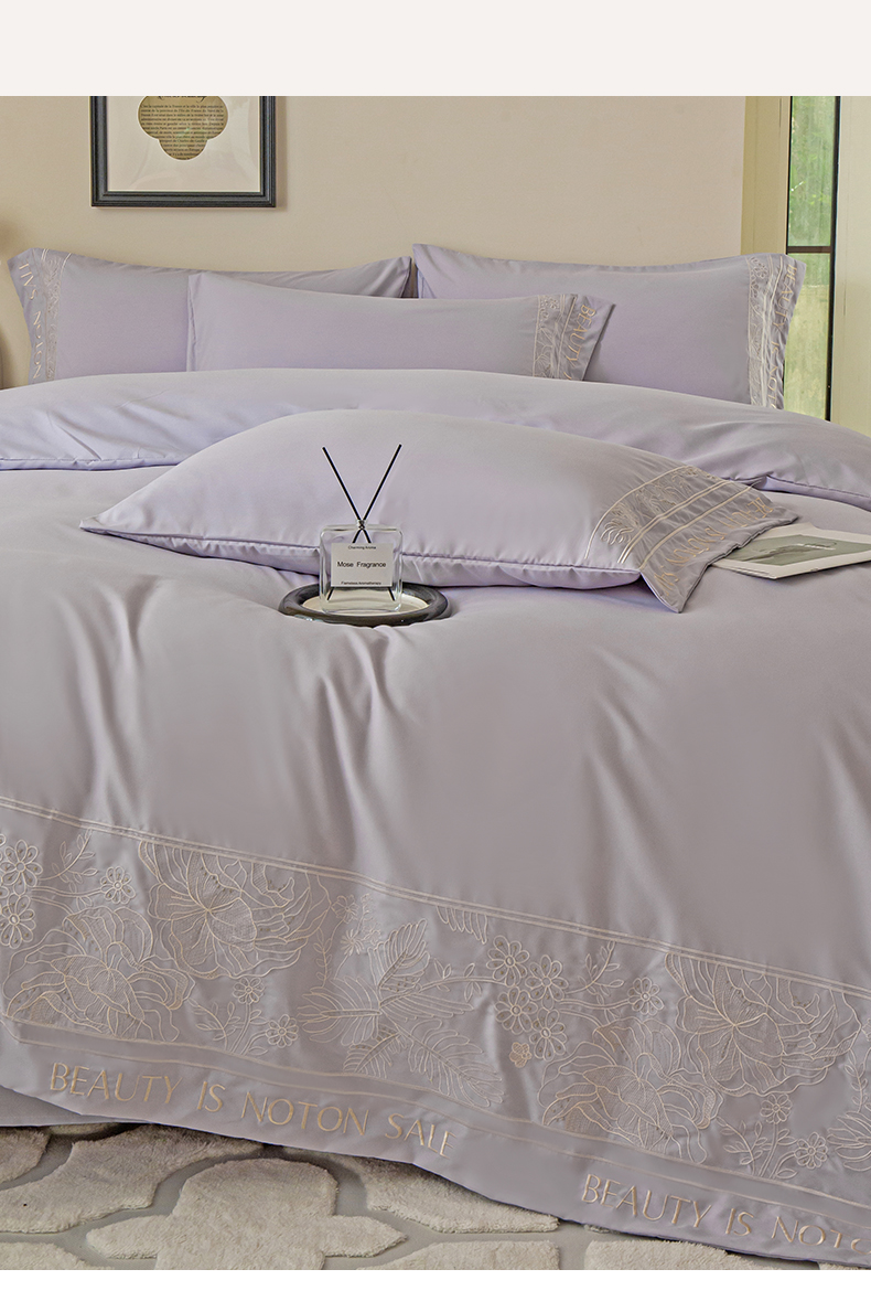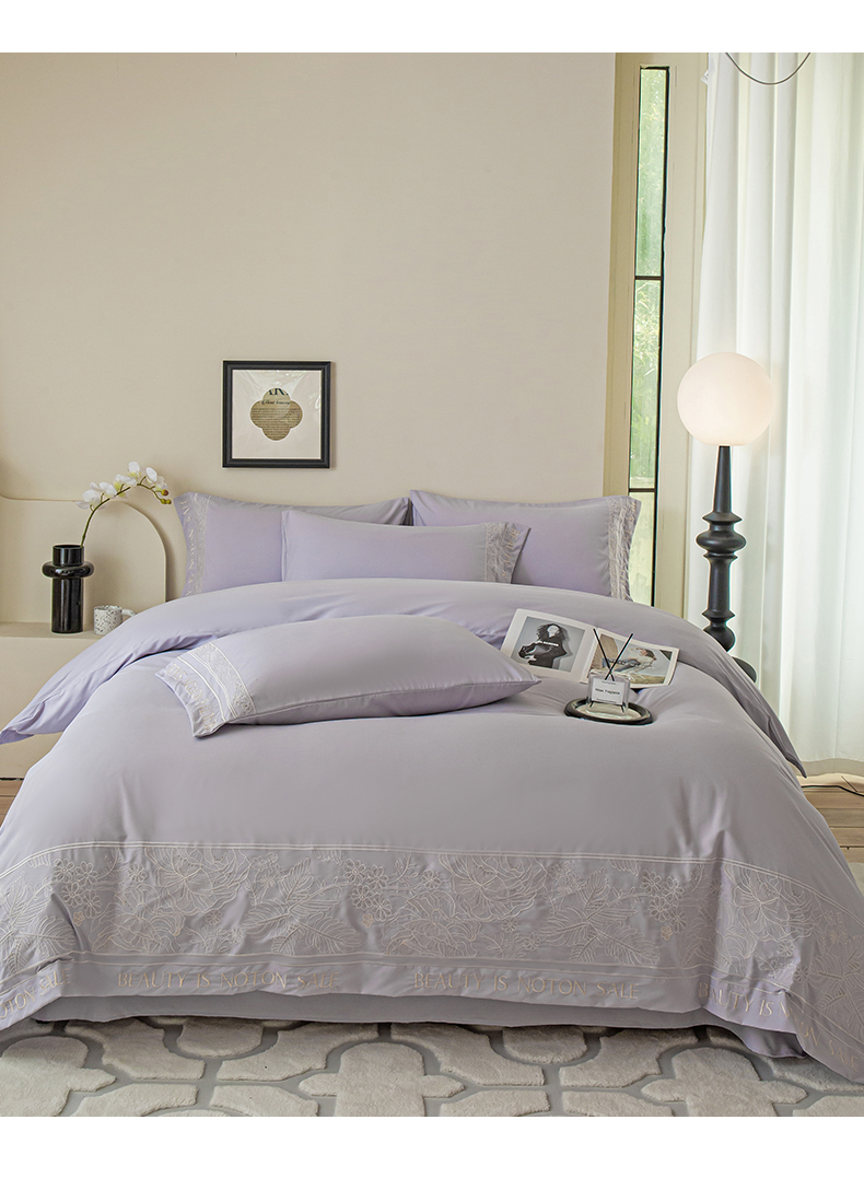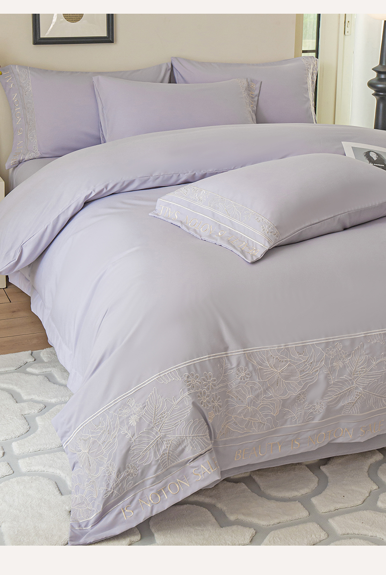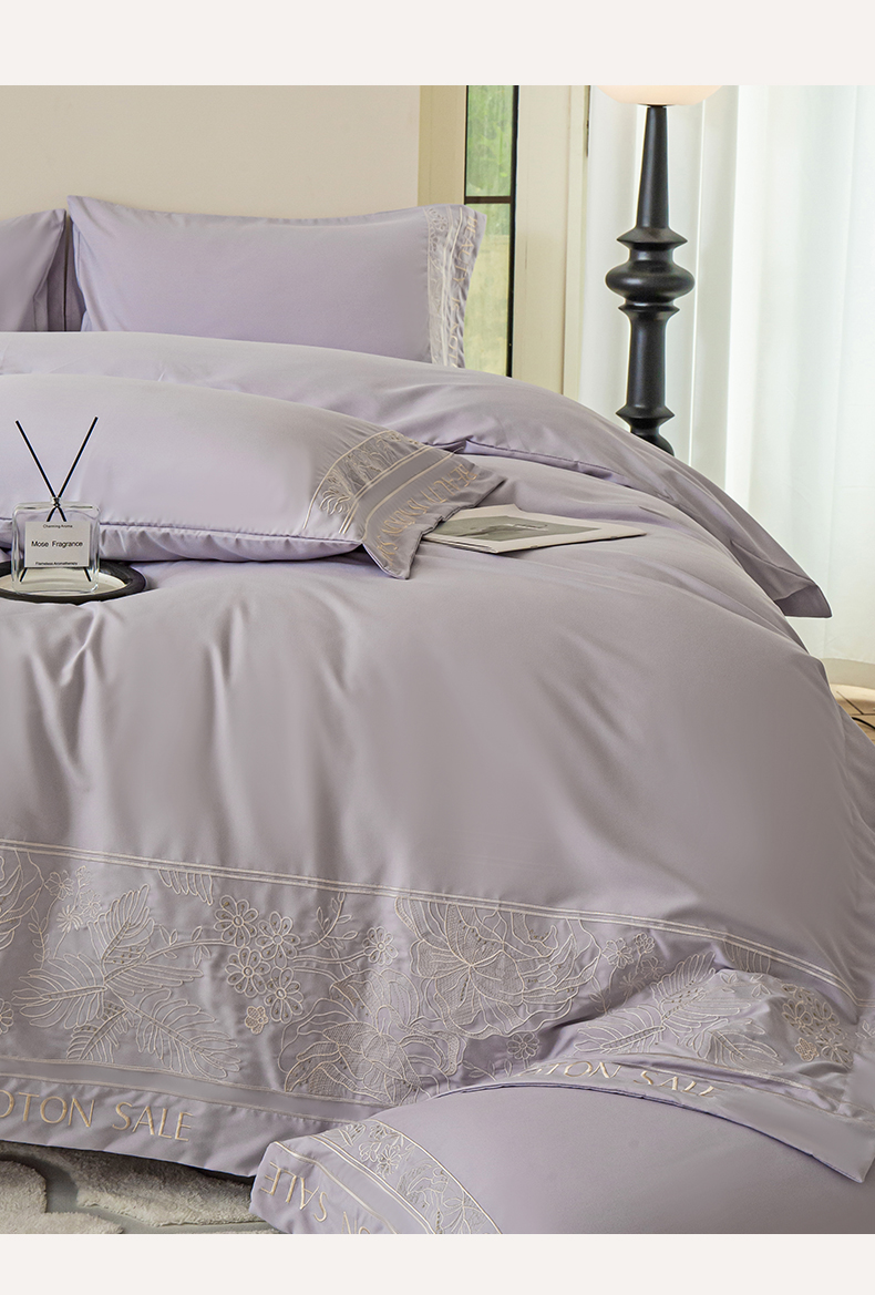 商品名称:千希家纺 2024新款亲肤水洗棉轻法式重工刺绣四件套-珊瑚海系列 魅力紫