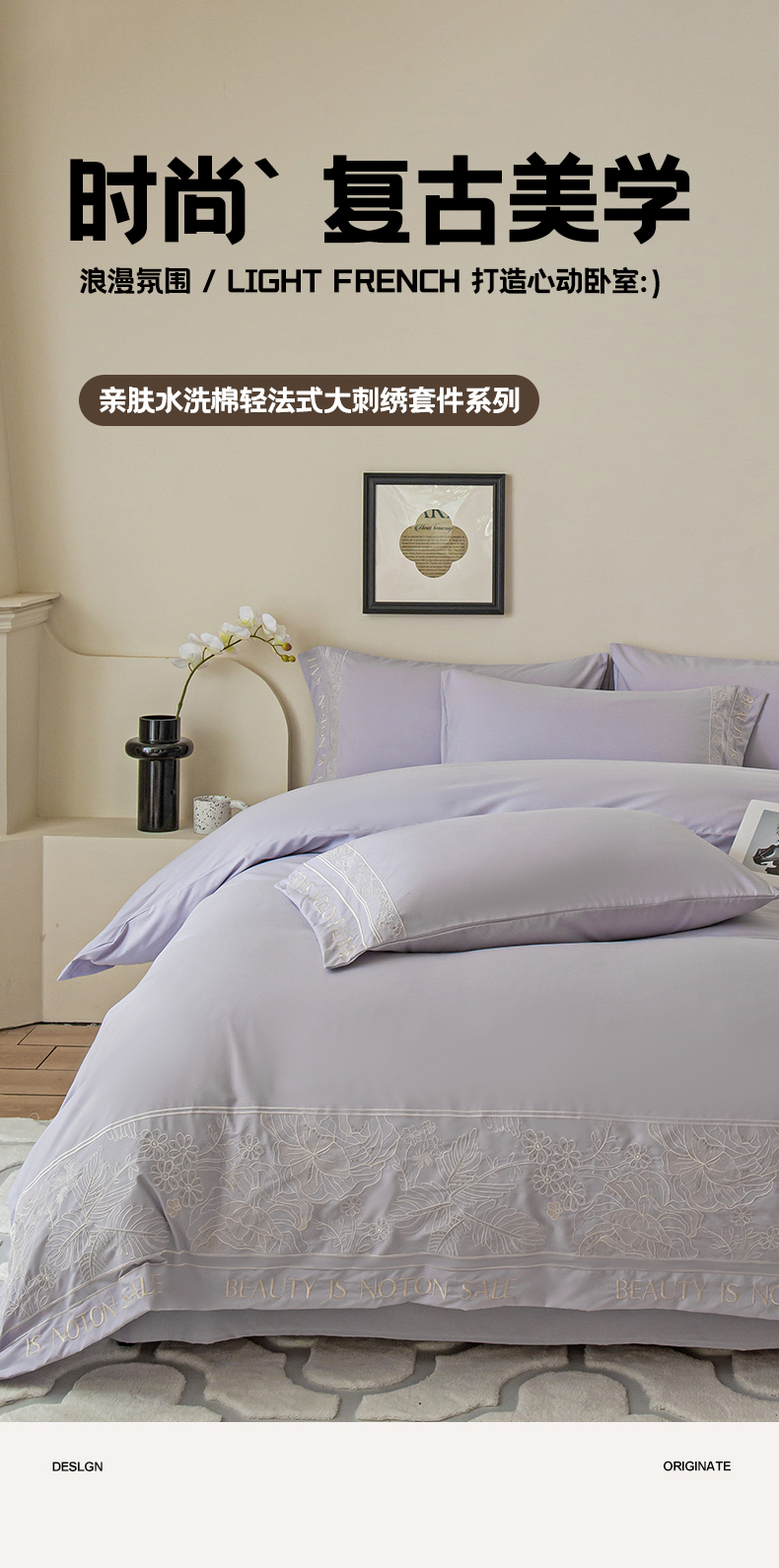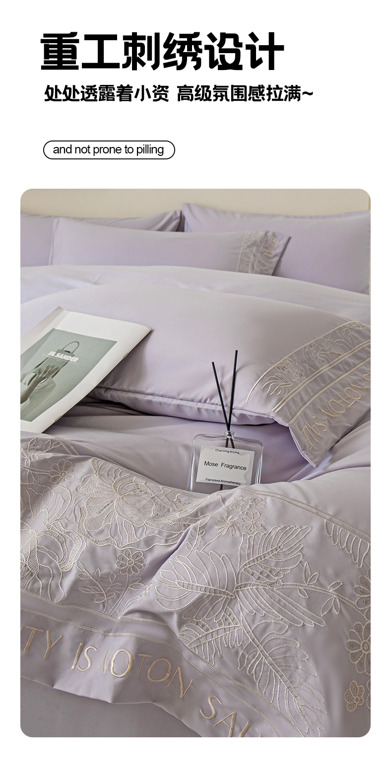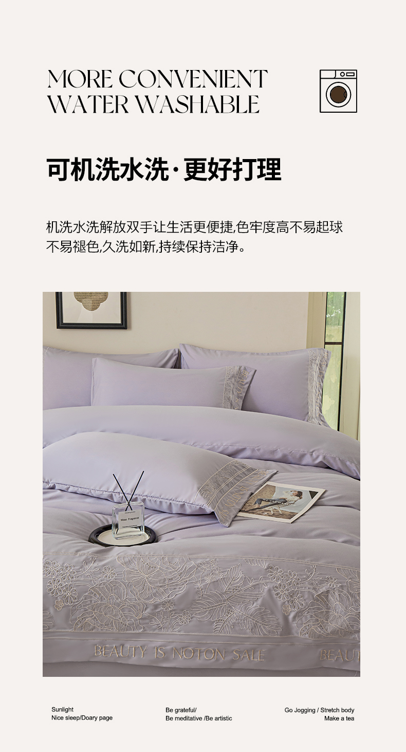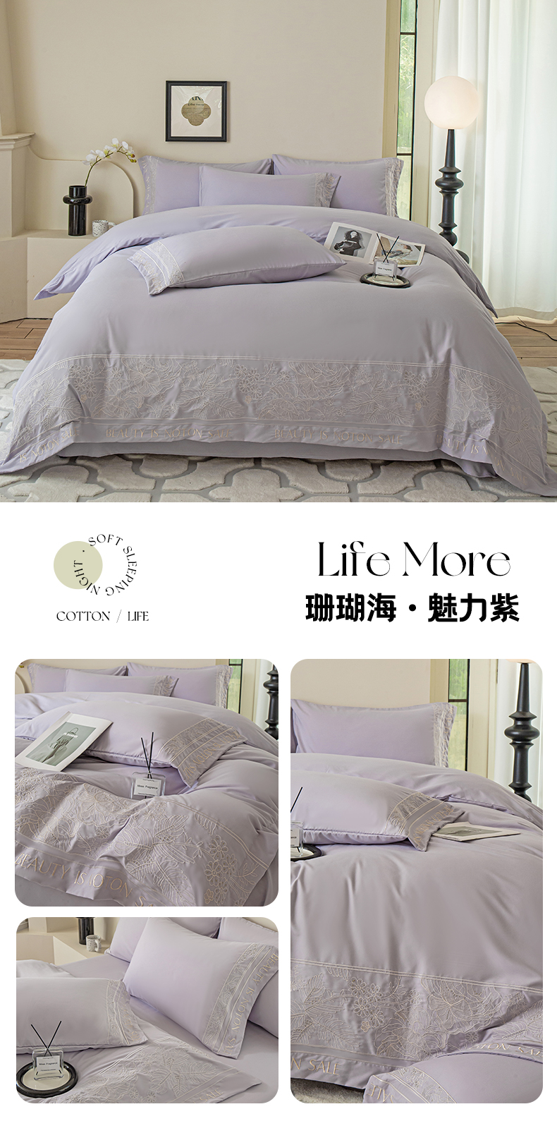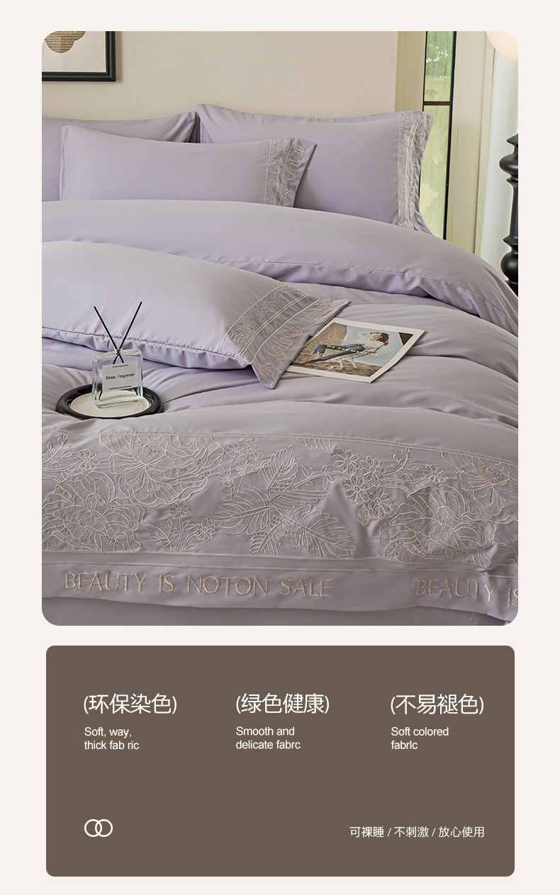 商品名称:千希家纺 2024新款亲肤水洗棉轻法式重工刺绣四件套-珊瑚海系列 魅力紫