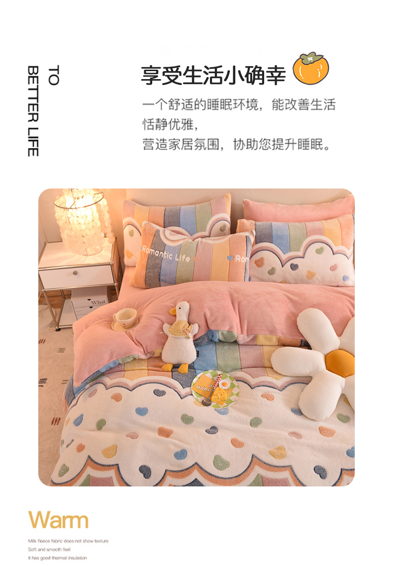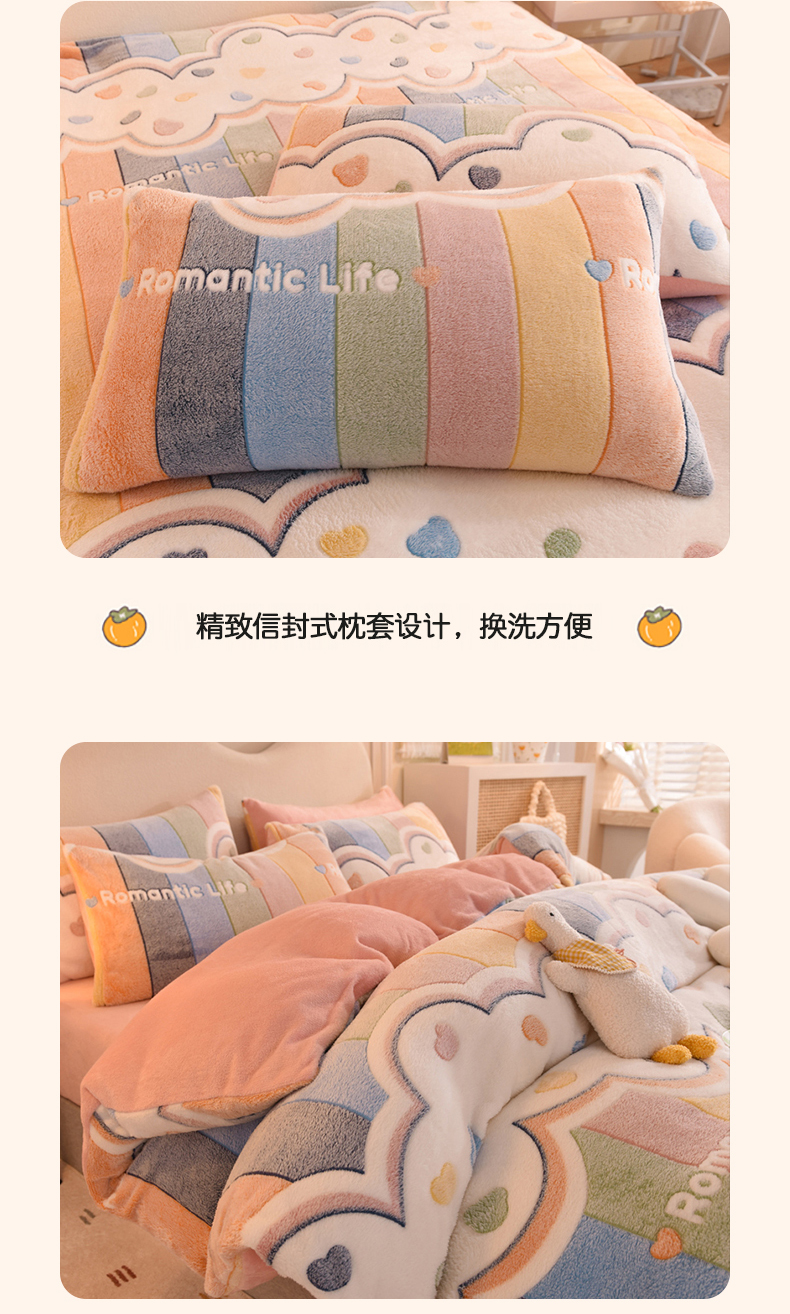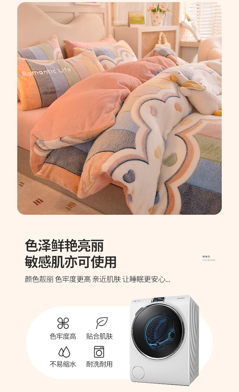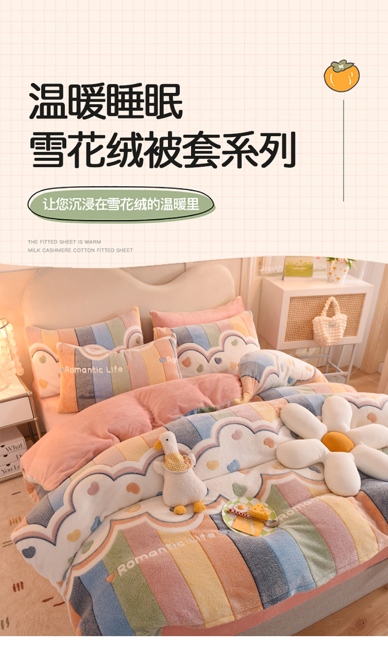 当前位置: 91家纺网 > 商品网购 > 床品套件 > 四件套 > 其它四件套 > 慕梵家居 2024新款雪花绒卡通四件套 彩虹