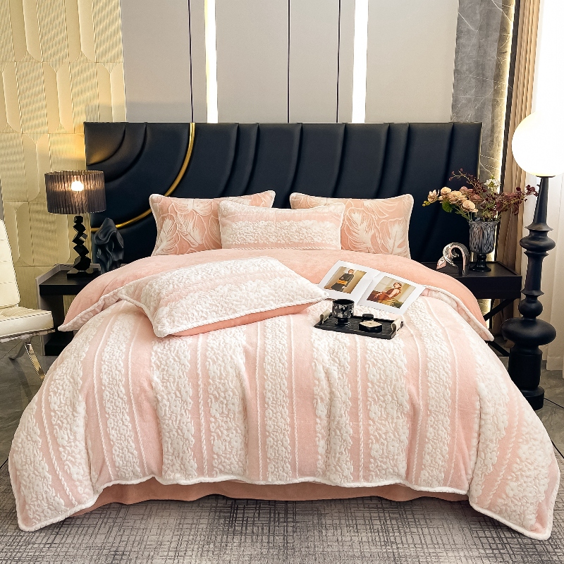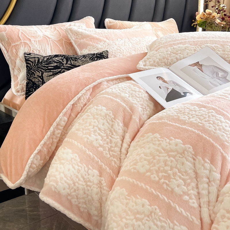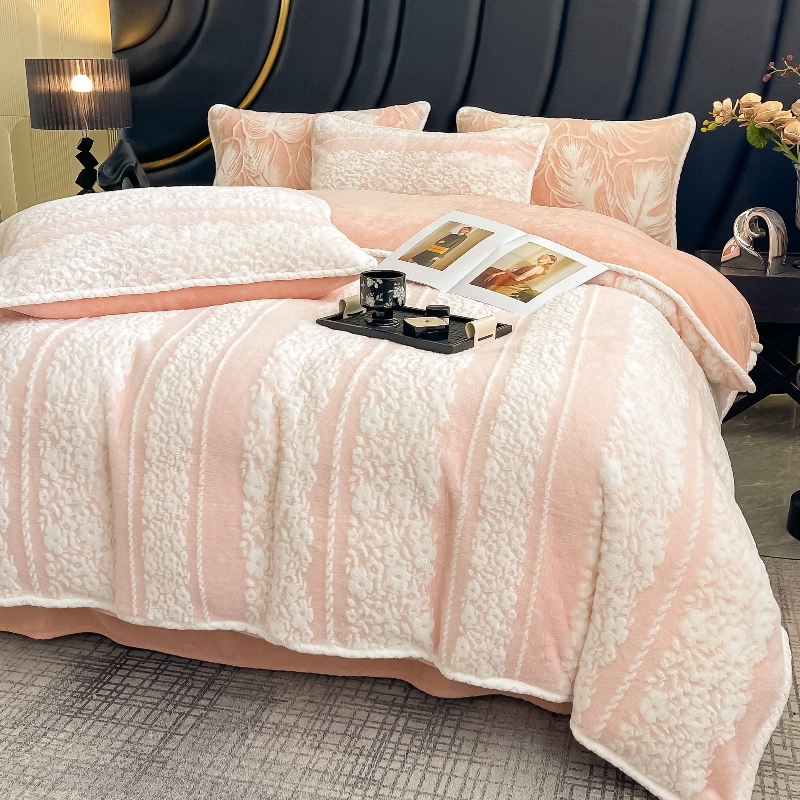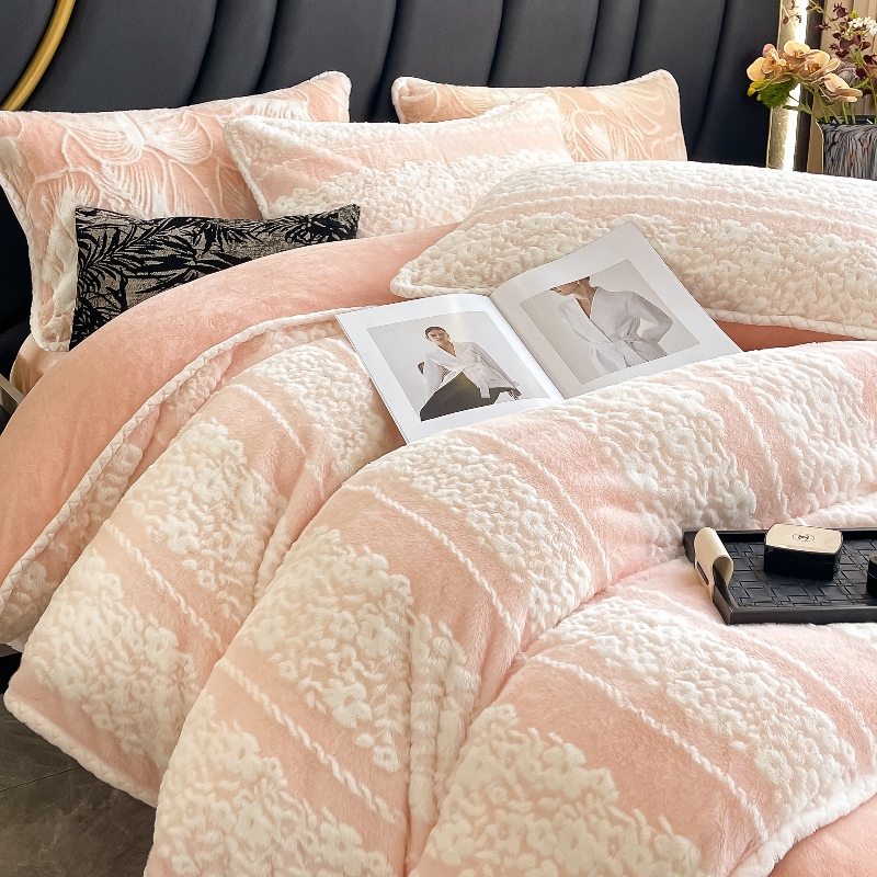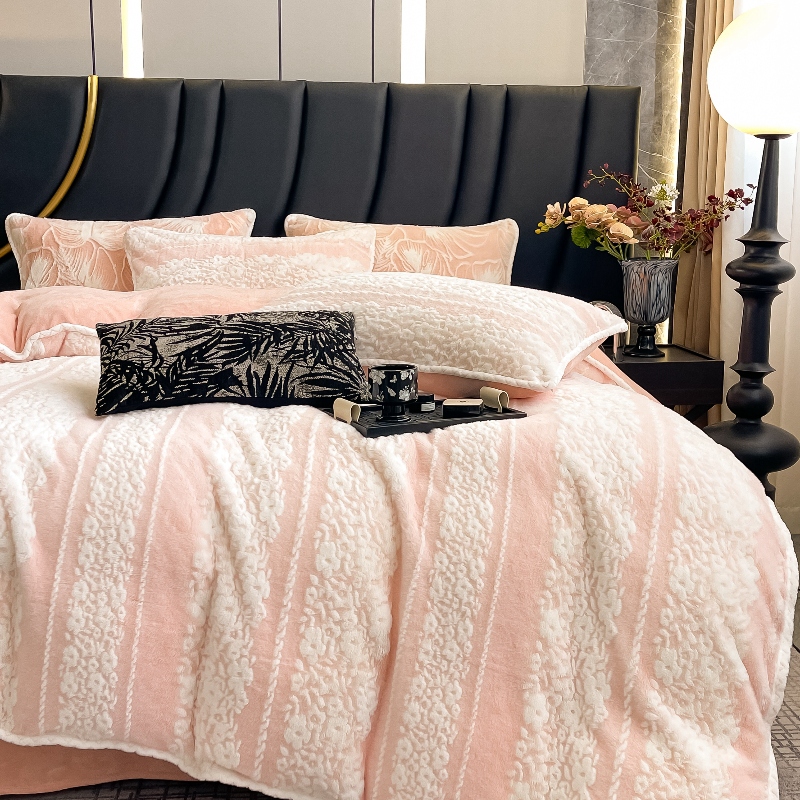 商品名称:首选家纺 2024新款兔毛绒雕花款四件套 兔绒雕花-彩花