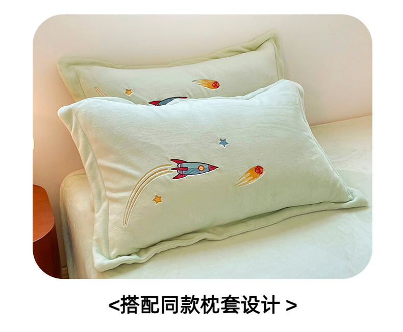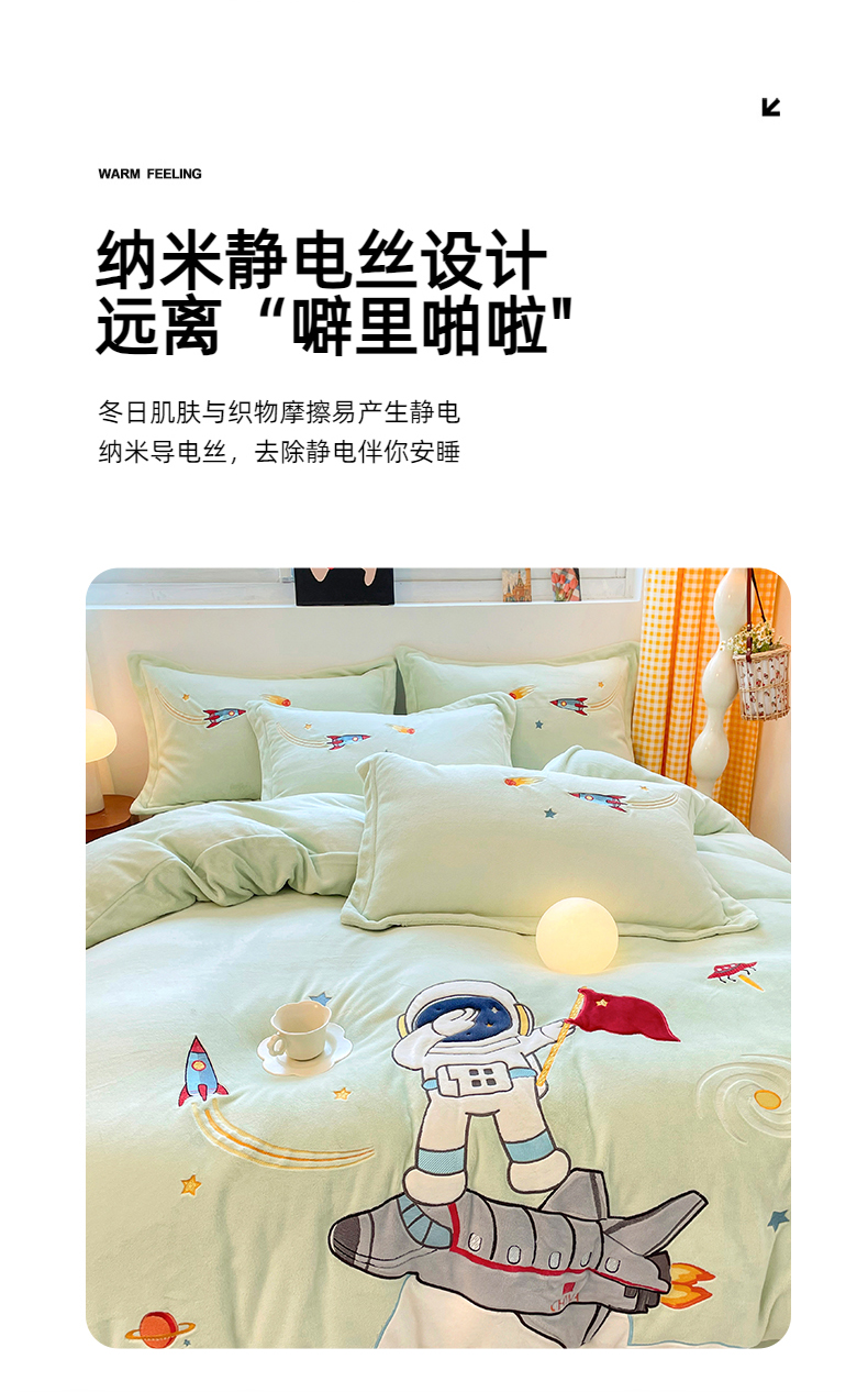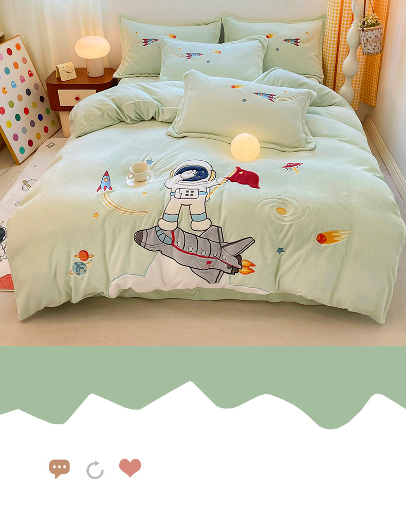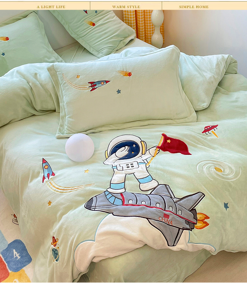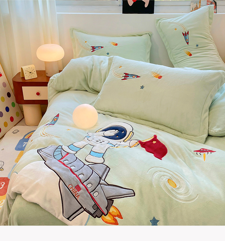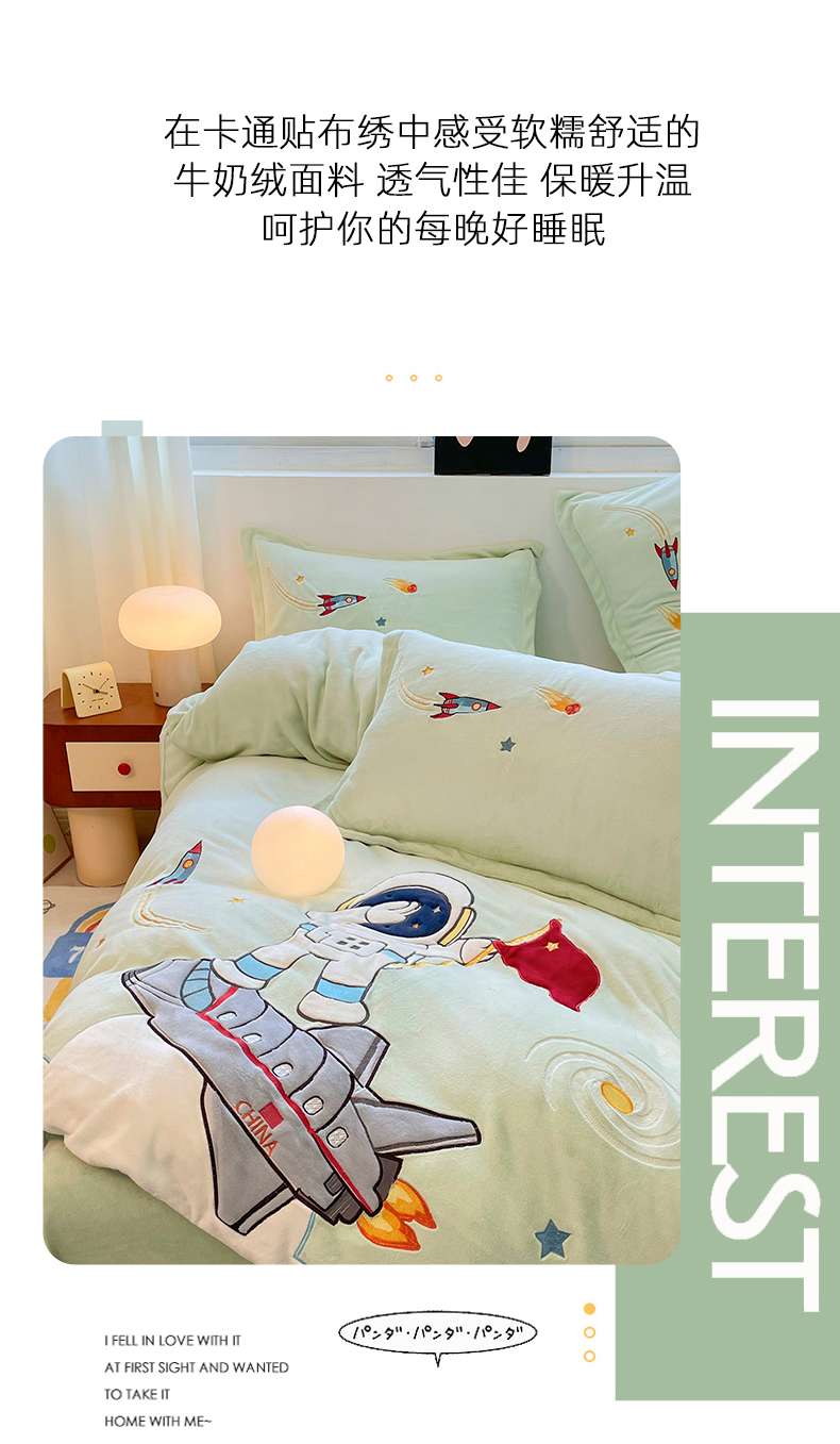 商品名称:金绣美居 2025新款牛奶绒毛绒贴布绣花保暖四件套-探险家 探险家-绿