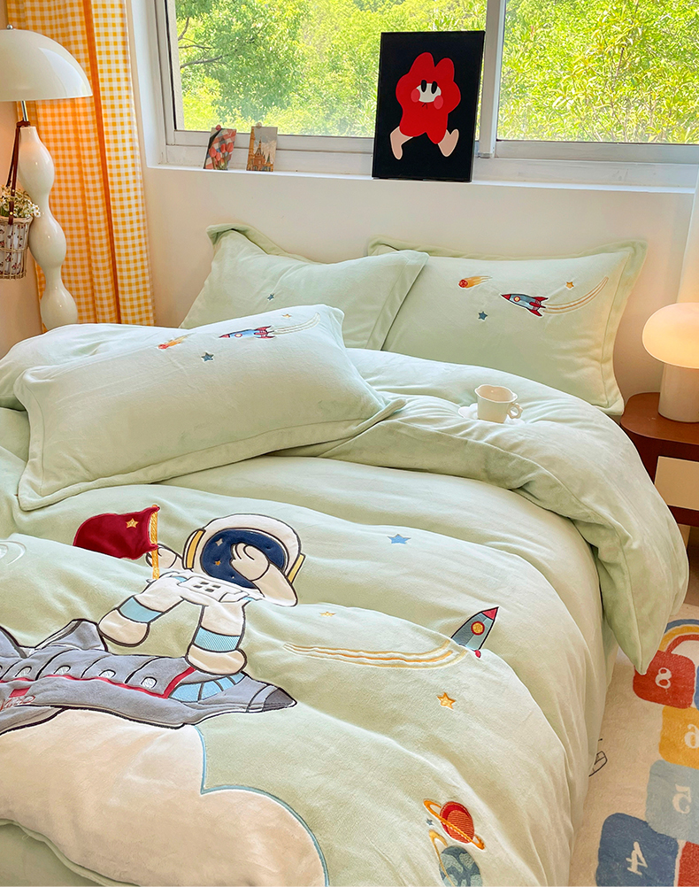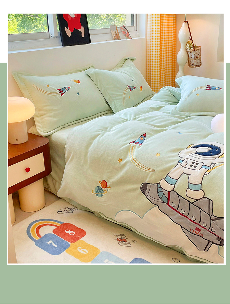 金绣美居 2025新款牛奶绒毛绒贴布绣花保暖四件套-探险家 探险家-绿