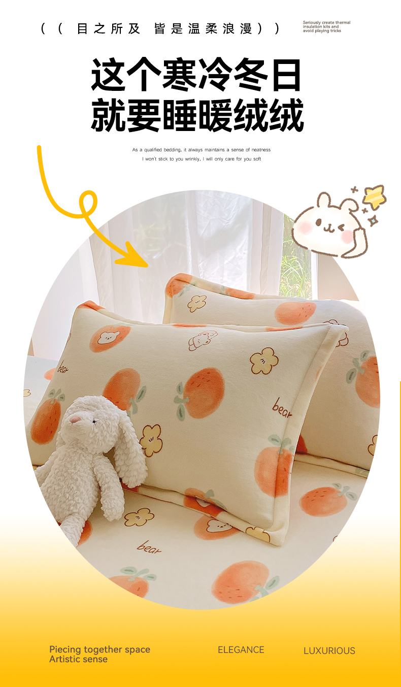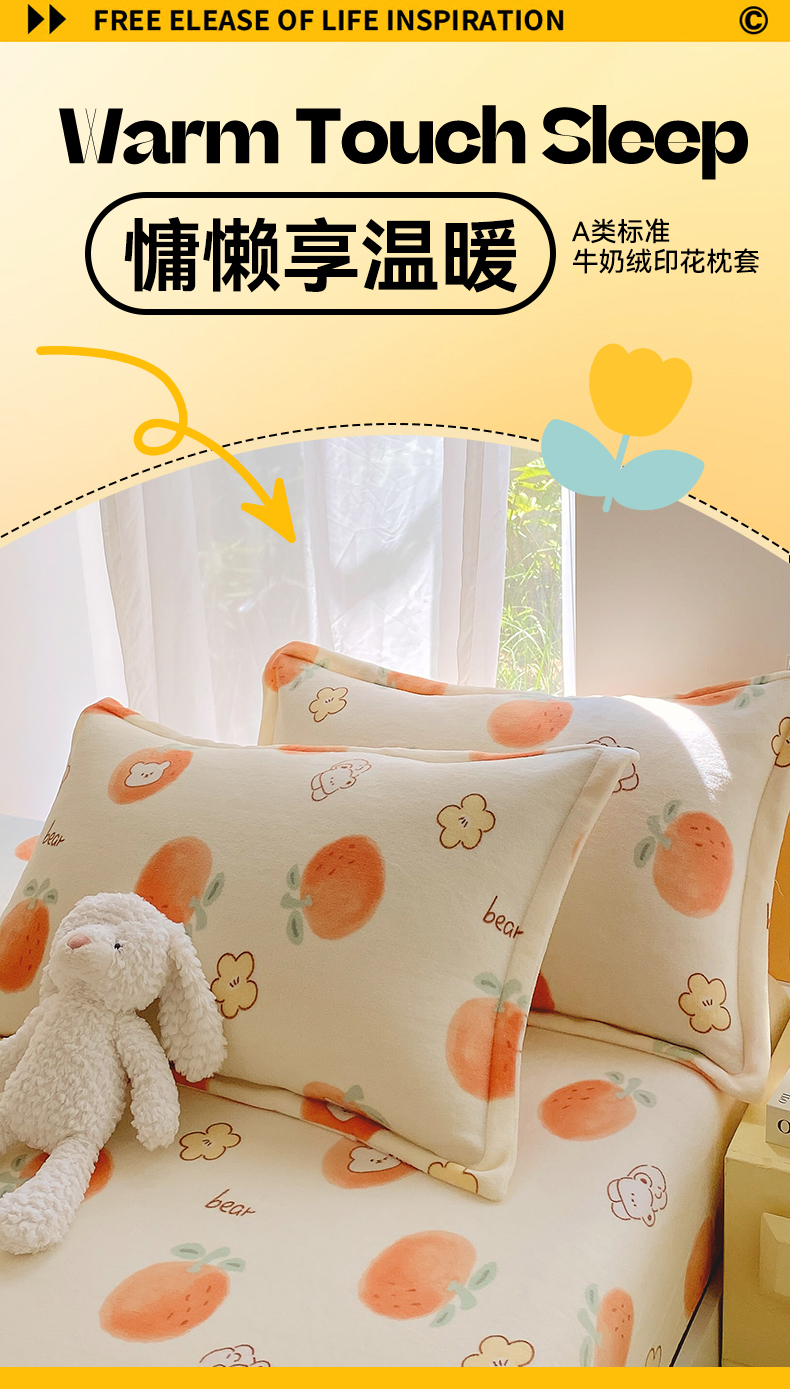 凯儿家纺 2024新款A类牛奶绒印花枕套 心想事成