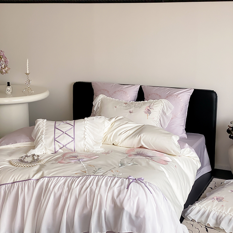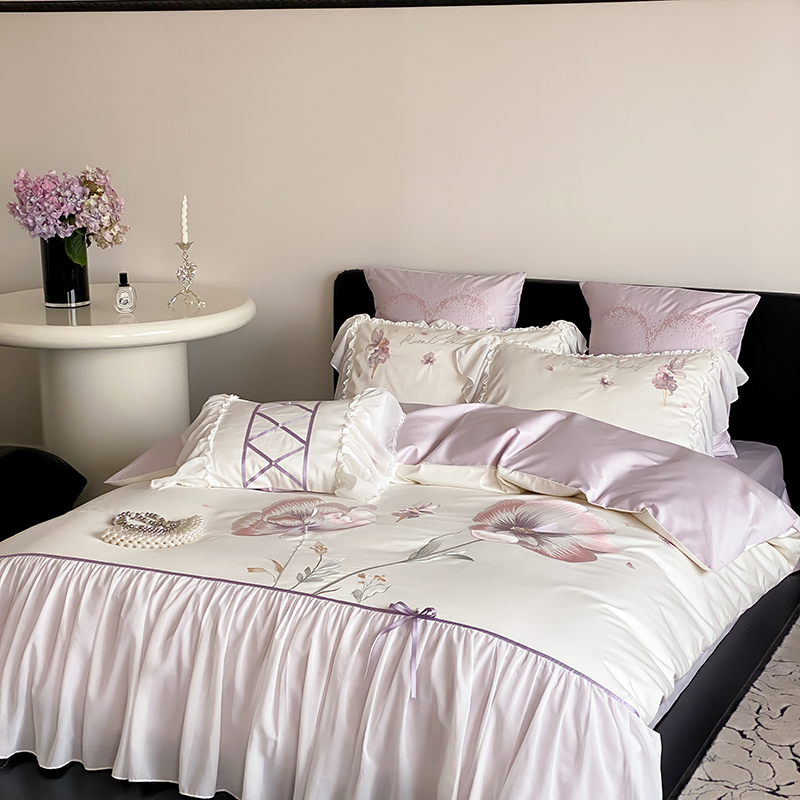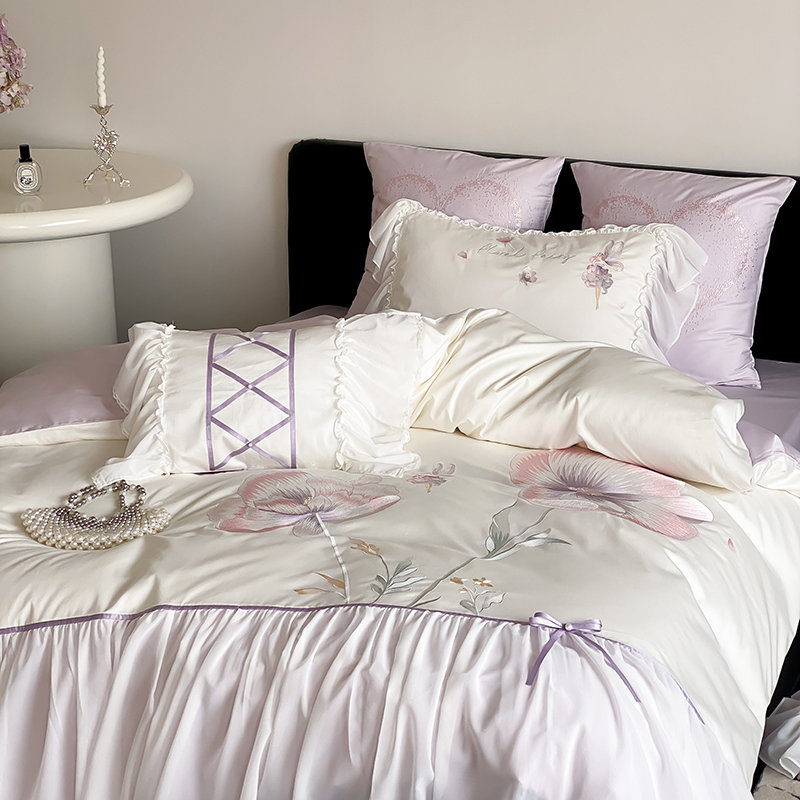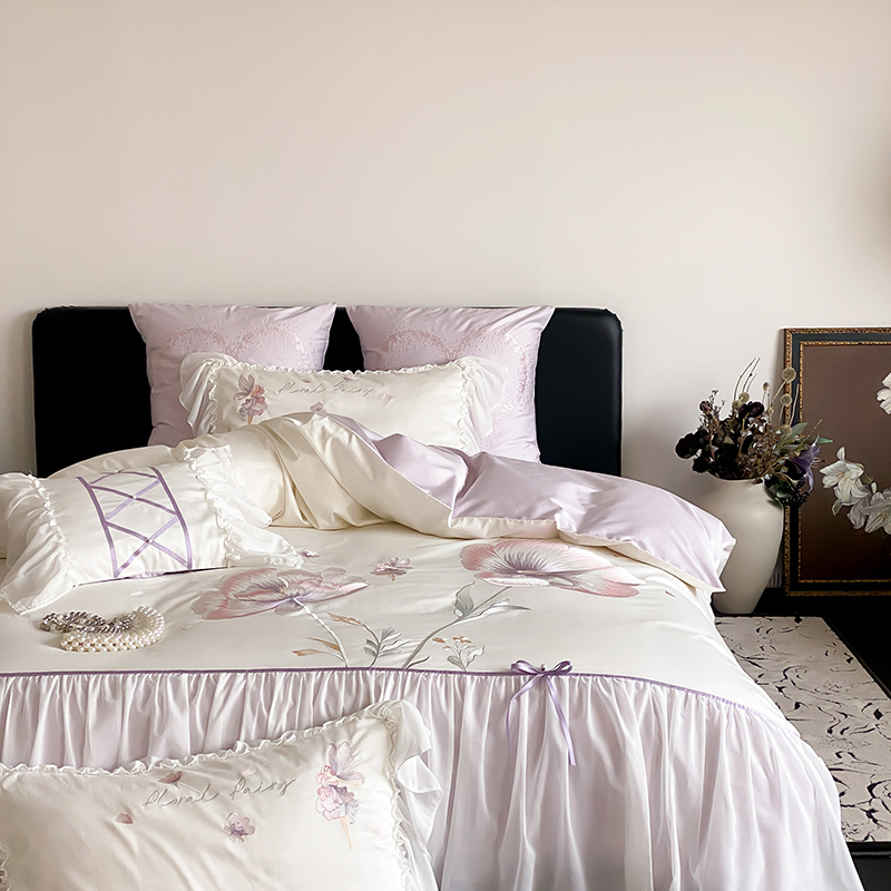 (总)曼布缇 2025新品100S长绒棉绣花四件套-花仙子