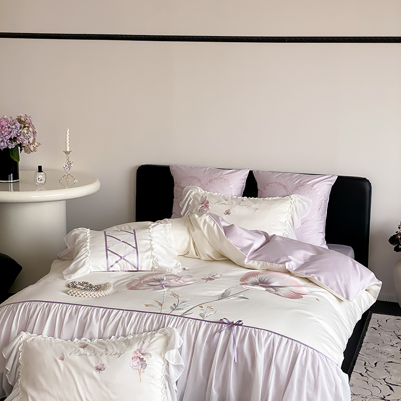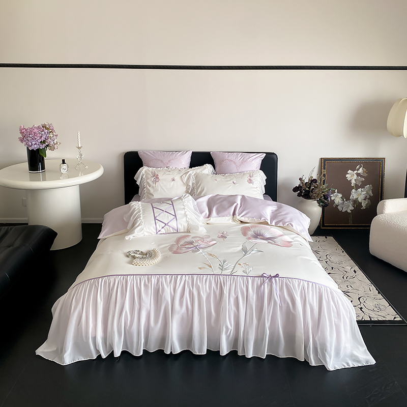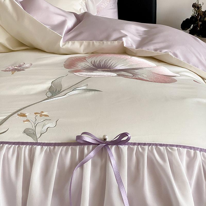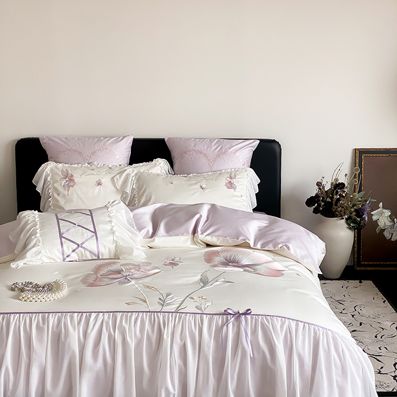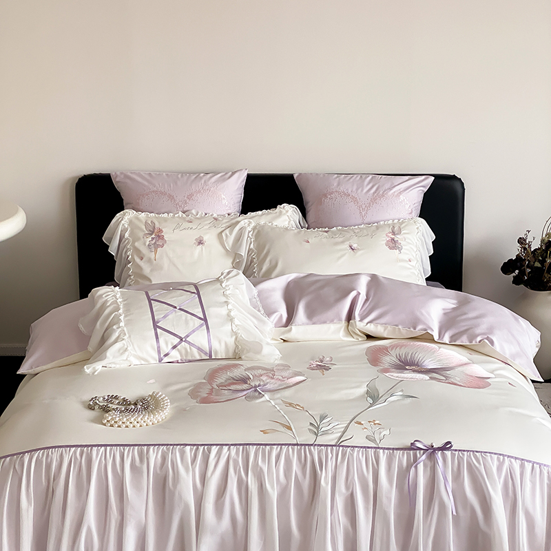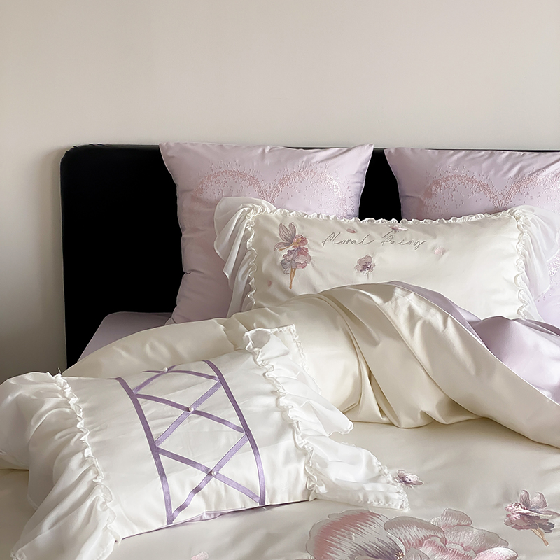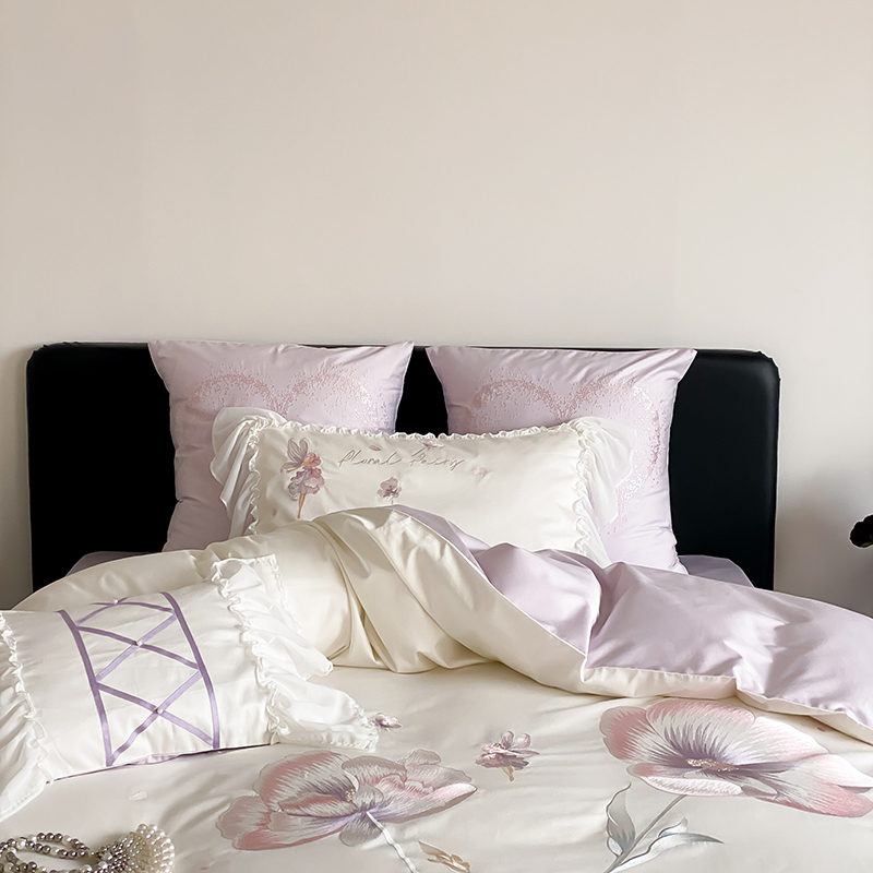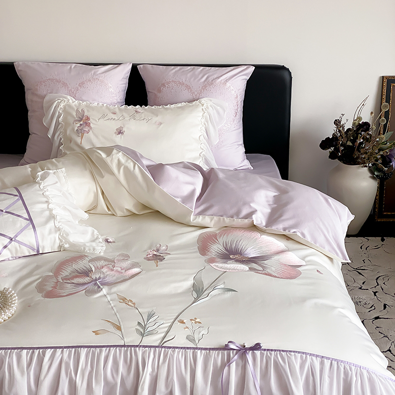 商品名称:(总)曼布缇 2025新品100S长绒棉绣花四件套-花仙子