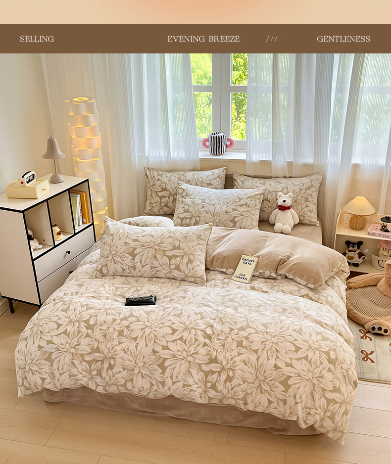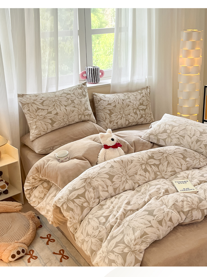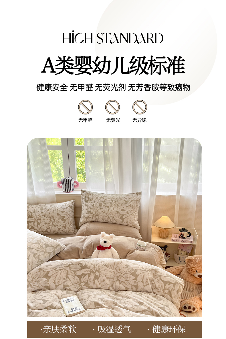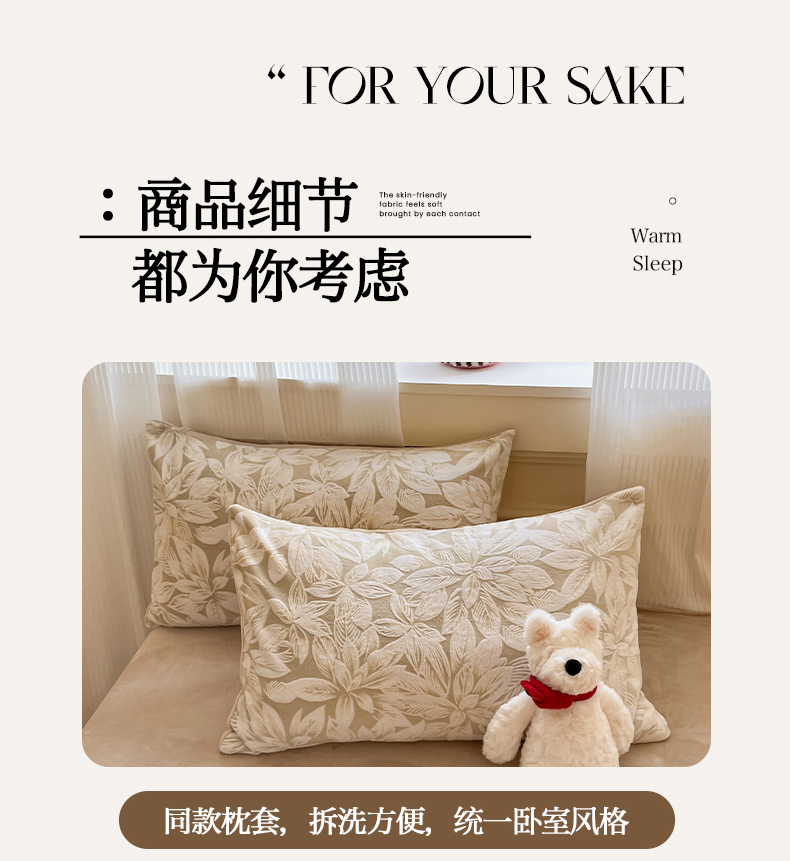 莱茵家居 2024新款a类加厚立体雕花牛奶绒四件套 茉莉-卡其