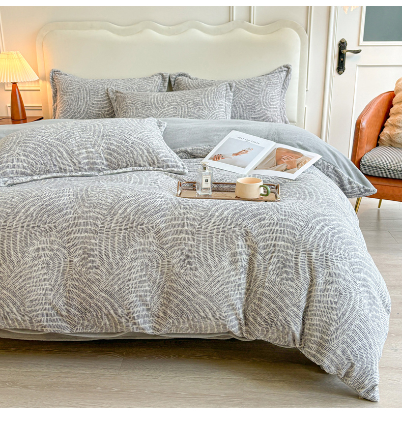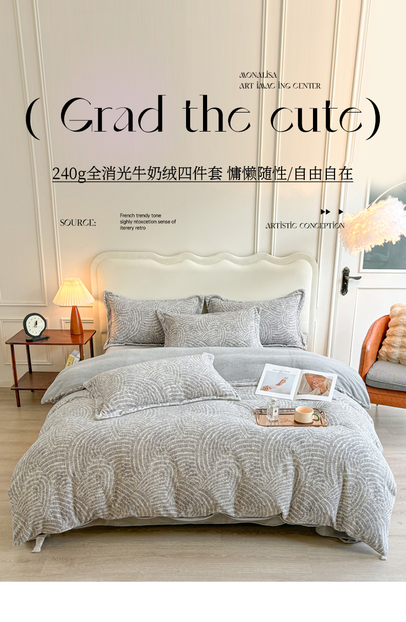 (总)菡宝 2025新款简约良品风牛奶绒四件套-查尔斯系列 支持定做定制尺寸,查尔斯-灰,查尔斯-卡其,卡伦
