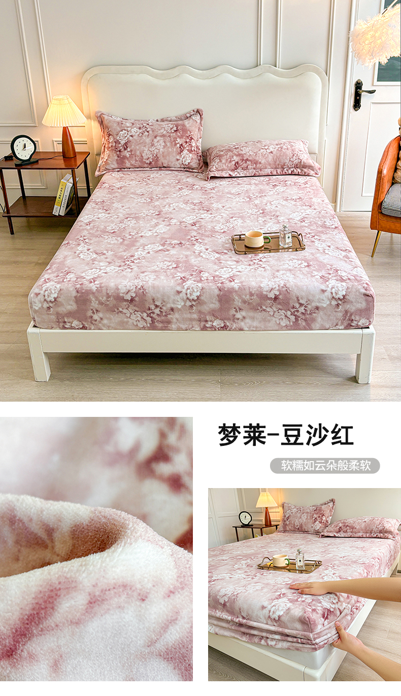 菡宝 2024新款8斤240g全消光牛奶绒系列单床笠 梦莱-豆沙红
