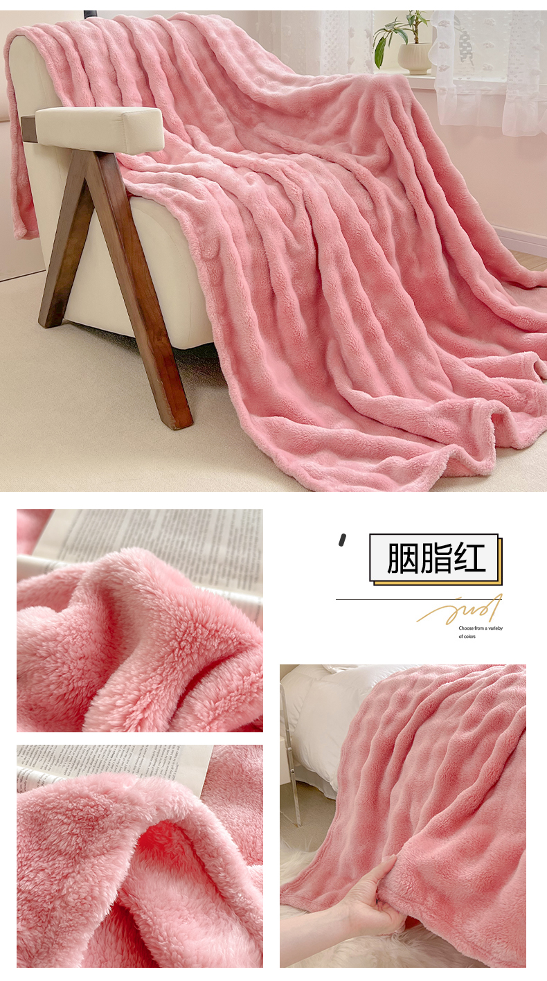 商品名称:羋多(原穆琪)2024新款高克重牛奶绒仿兔毛泡泡毛毯双面绒床单办公室多功能盖毯午睡沙发毯披肩毯 胭脂红