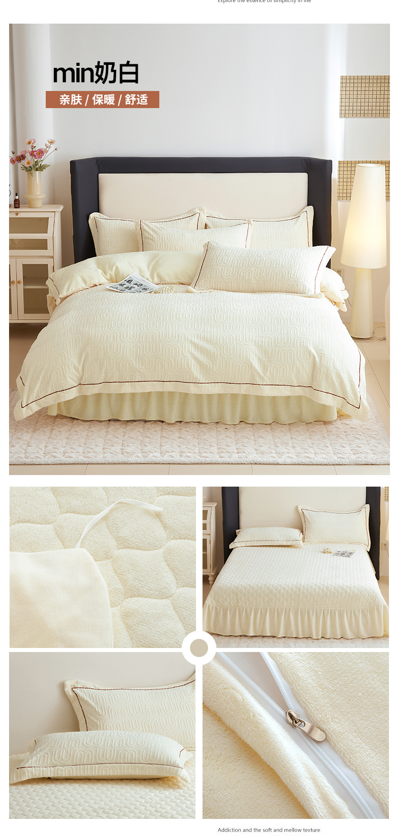 商品名称:舒梦琪家纺 2024新款雕花绒床盖一字绣四件套 min奶白