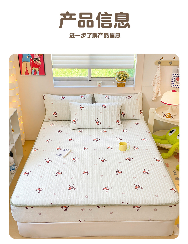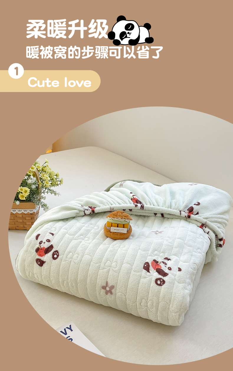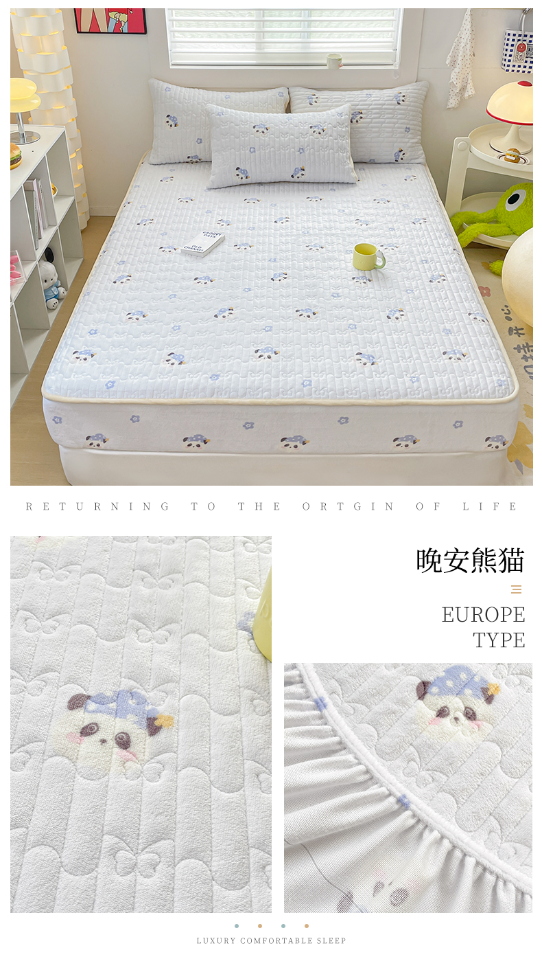 商品名称:Sweet dreams甜梦 2024新款牛奶绒蝴蝶结印花夹棉床笠 晚安熊猫