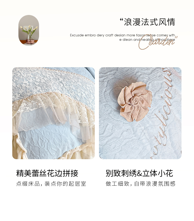 (总)嗯呢2025新款A类倍柔棉双层花边绣花夏被四件套,天空蓝,抹茶绿,樱花粉,浅水绿,浅水蓝,溶月灰,高级咖