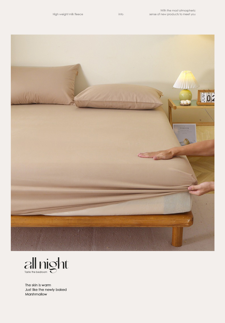 晶缦家纺 2024新款全棉13376纯色喷气全棉磨毛单品床笠 暖芸馨-鹿角棕