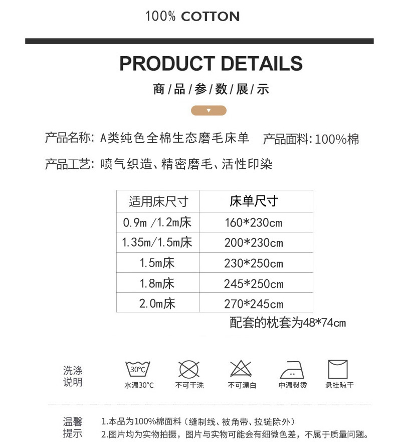 商品名称:(总)2025新款100%棉13376纯色喷气全棉磨毛床单单件纯棉单品床单加厚保暖斜纹活性单床单