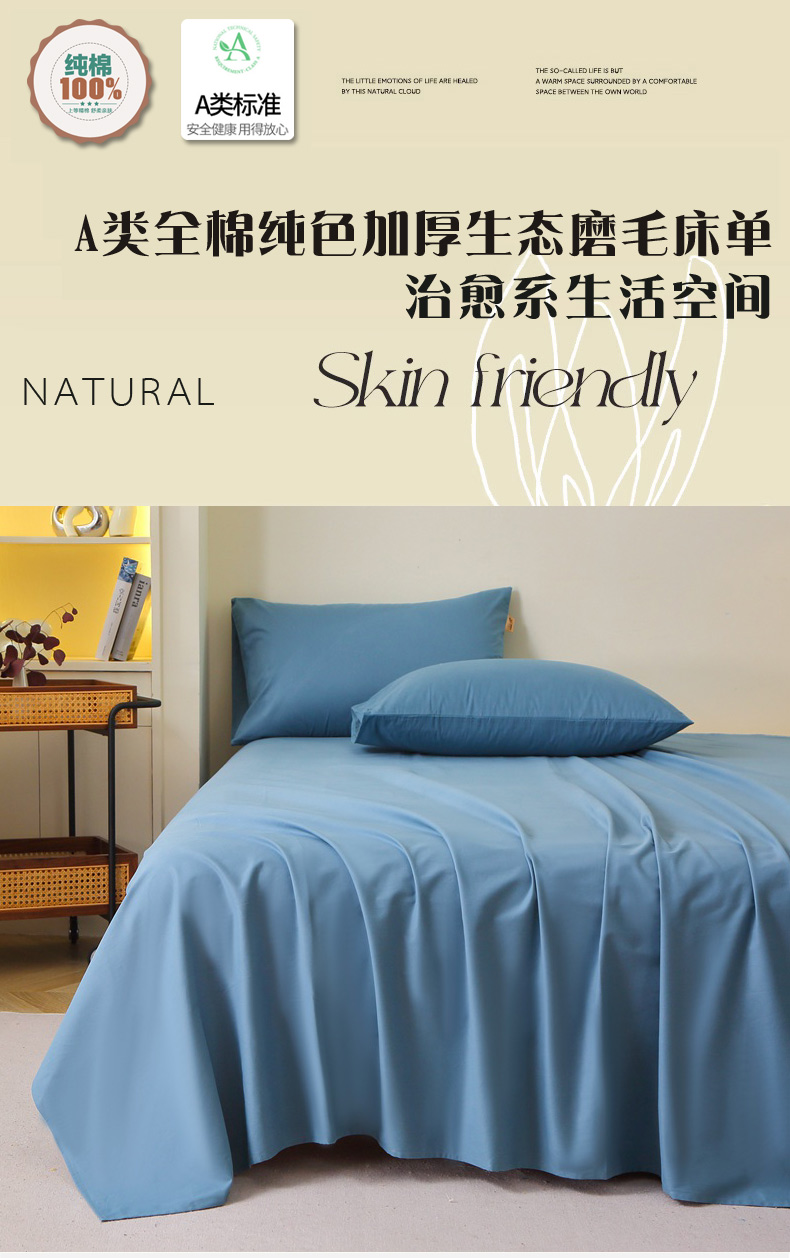 (总)2025新款100%棉13376纯色喷气全棉磨毛床单单件纯棉单品床单加厚保暖斜纹活性单床单