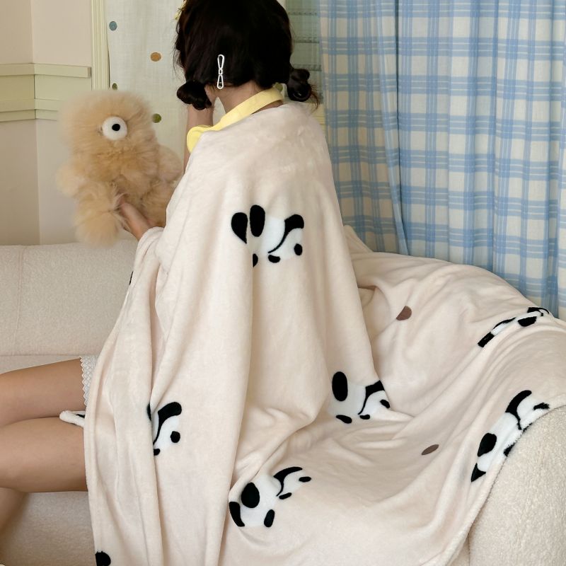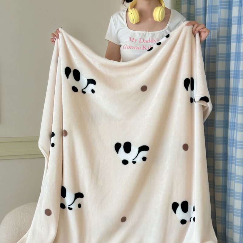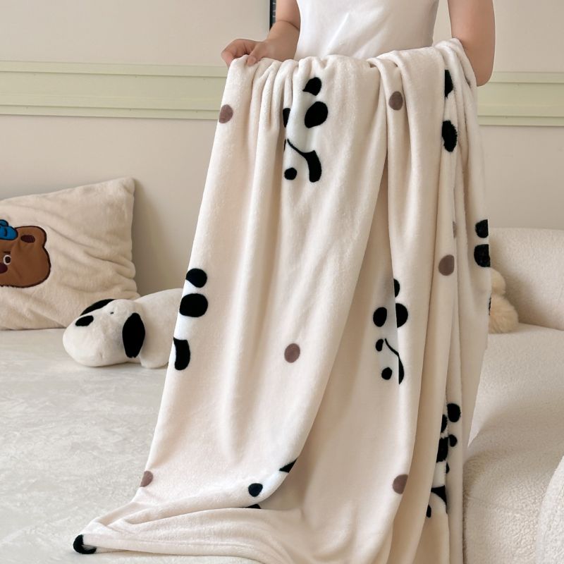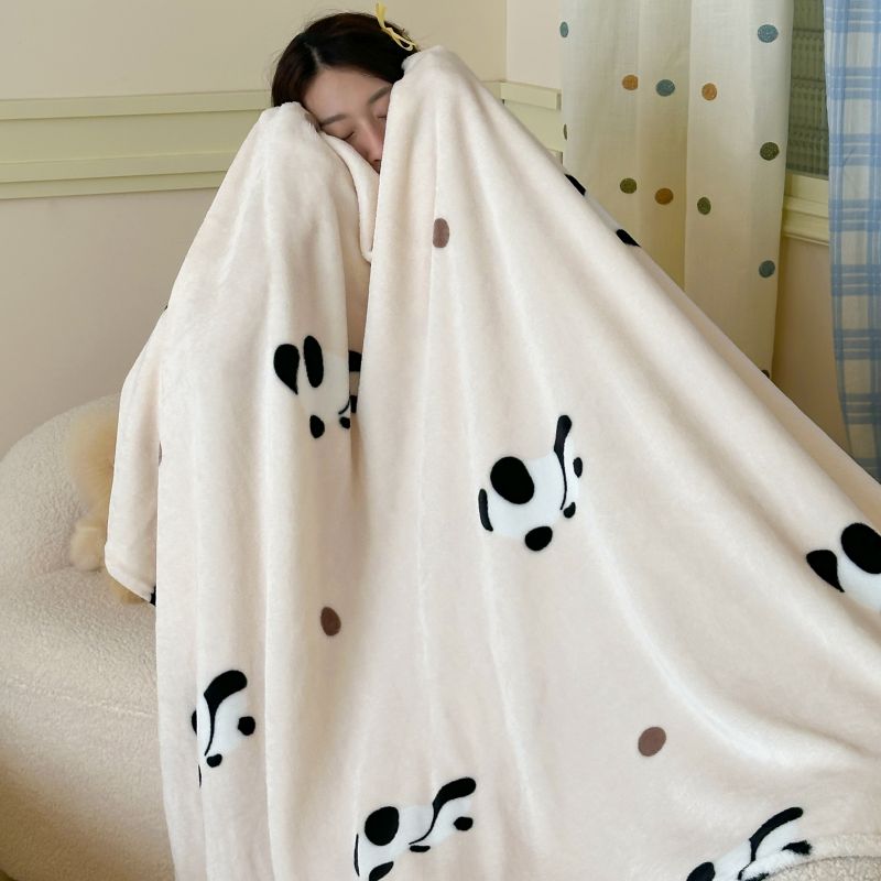 2024新款ins少女奶油治愈双面牛奶绒毯 波点熊猫