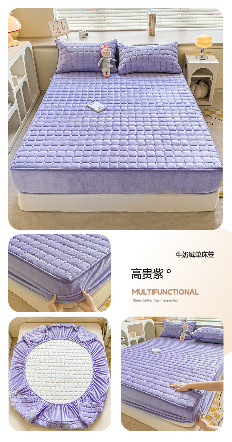 卡伦家纺 2025新款A类牛奶绒大豆纤维抗菌夹棉床笠 高贵紫