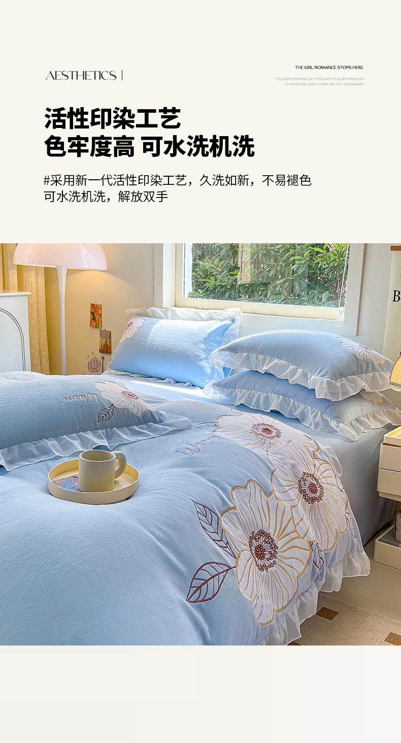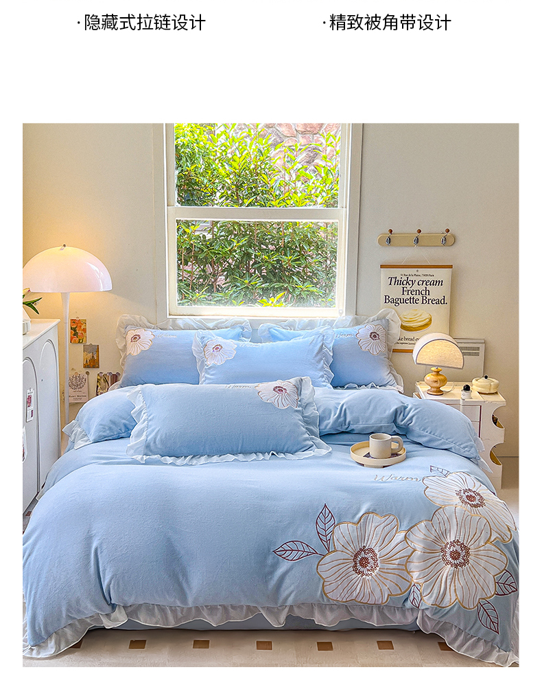 2024新款亲肤舒适牛奶绒重工艺四件套木子专版 半亩花田杜若蓝