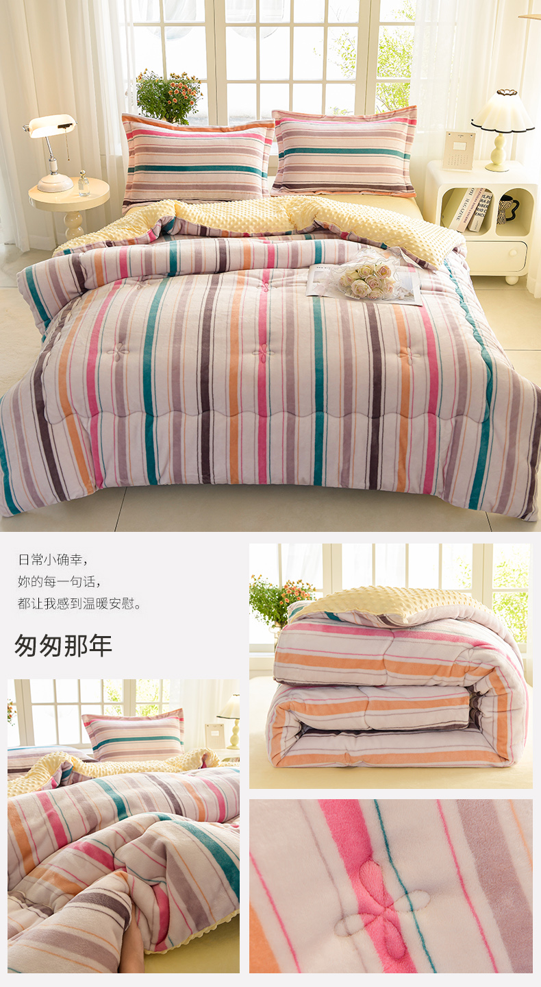 • 91家纺网 家纺一手货源 找家纺 圣靓家纺 2025新款牛奶豆豆绒印花保暖冬被 匆匆那年