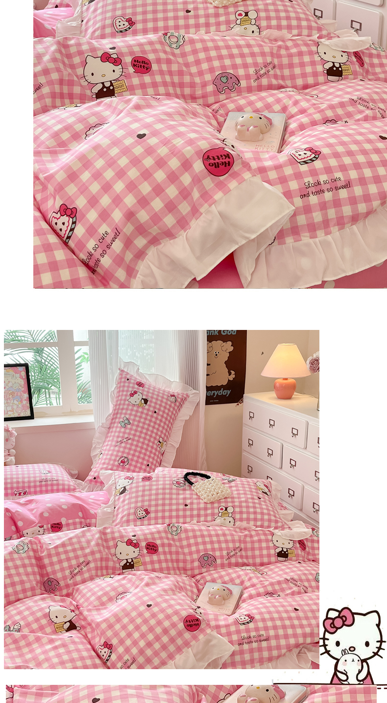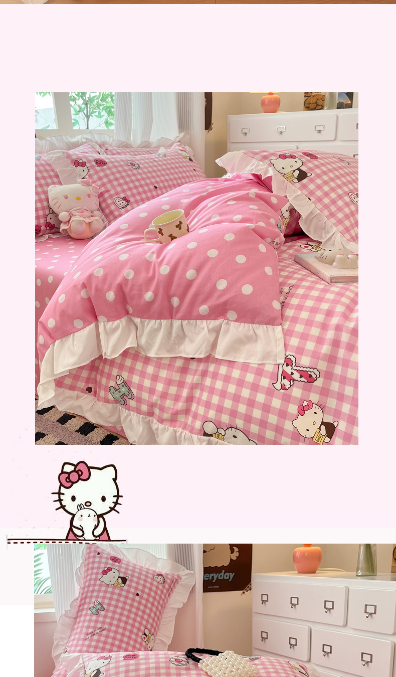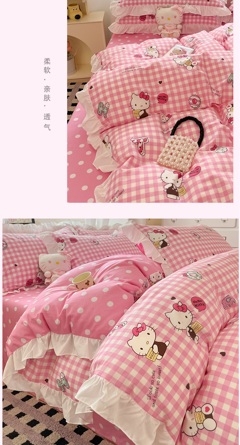 (总)三朵家纺 2024新款13372全棉花边款三丽鸥系列四件套