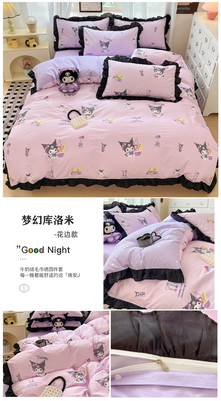 (总)三朵家纺 2024新款全消光三丽鸥印花牛奶绒系列四件套,爱心凯蒂,街舞库洛米,凯蒂公主,乐园KT,漫画帕恰,美好帕恰,美乐蒂格格,淘气帕恰,甜蜜公主KT,童心帕恰,艺术家库洛米,运动帕恰,字母帕恰