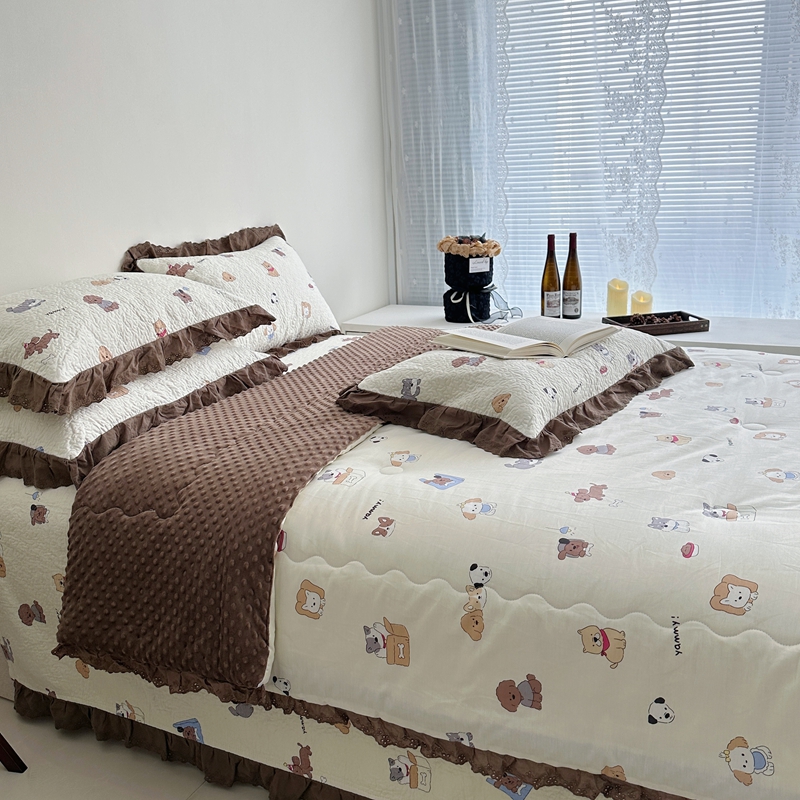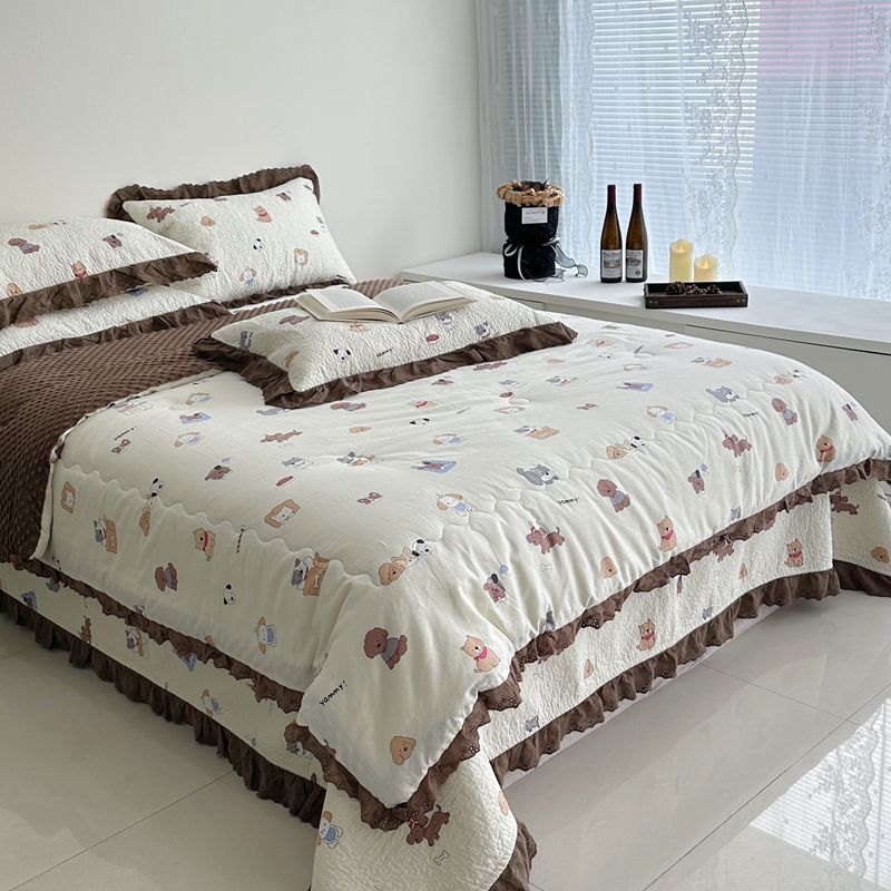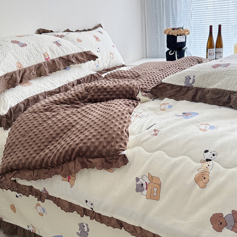 佰织鑫家居 2024新款秋冬全棉法式床盖款豆豆被四件套 萌宠