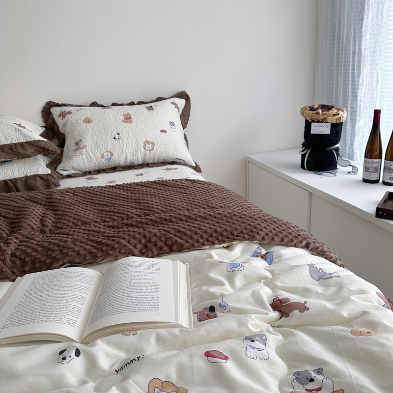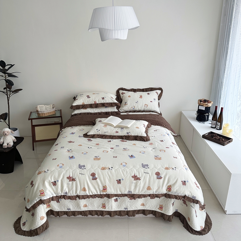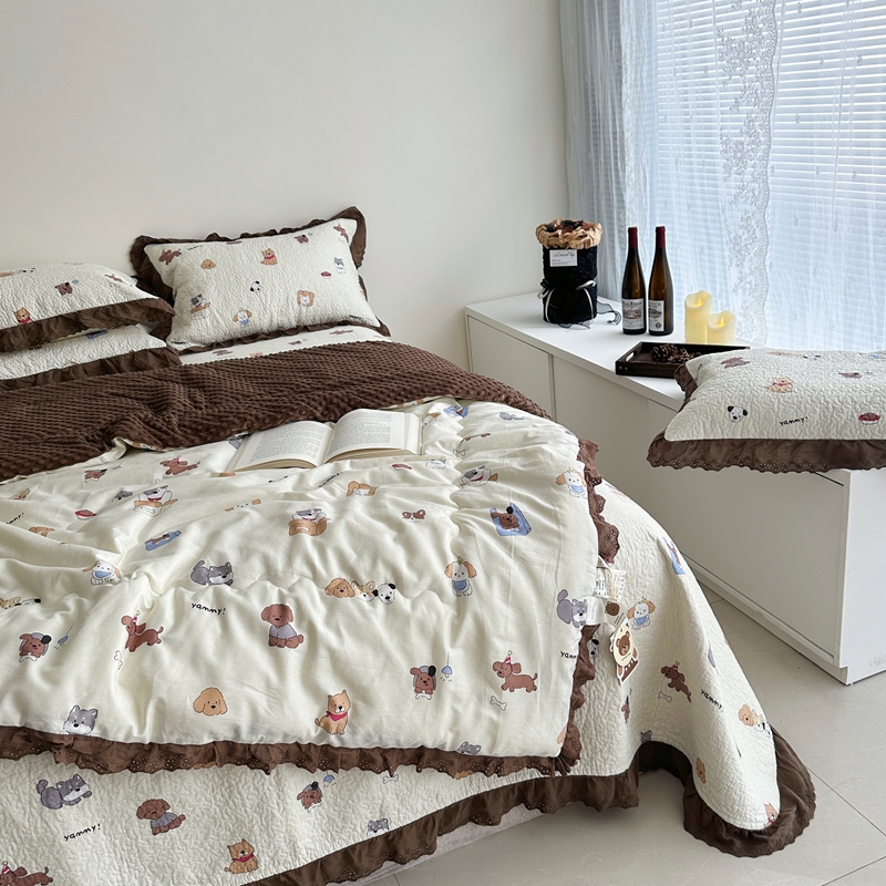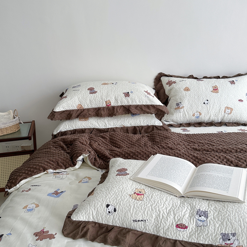 商品名称:佰织鑫家居 2024新款秋冬全棉法式床盖款豆豆被四件套 萌宠