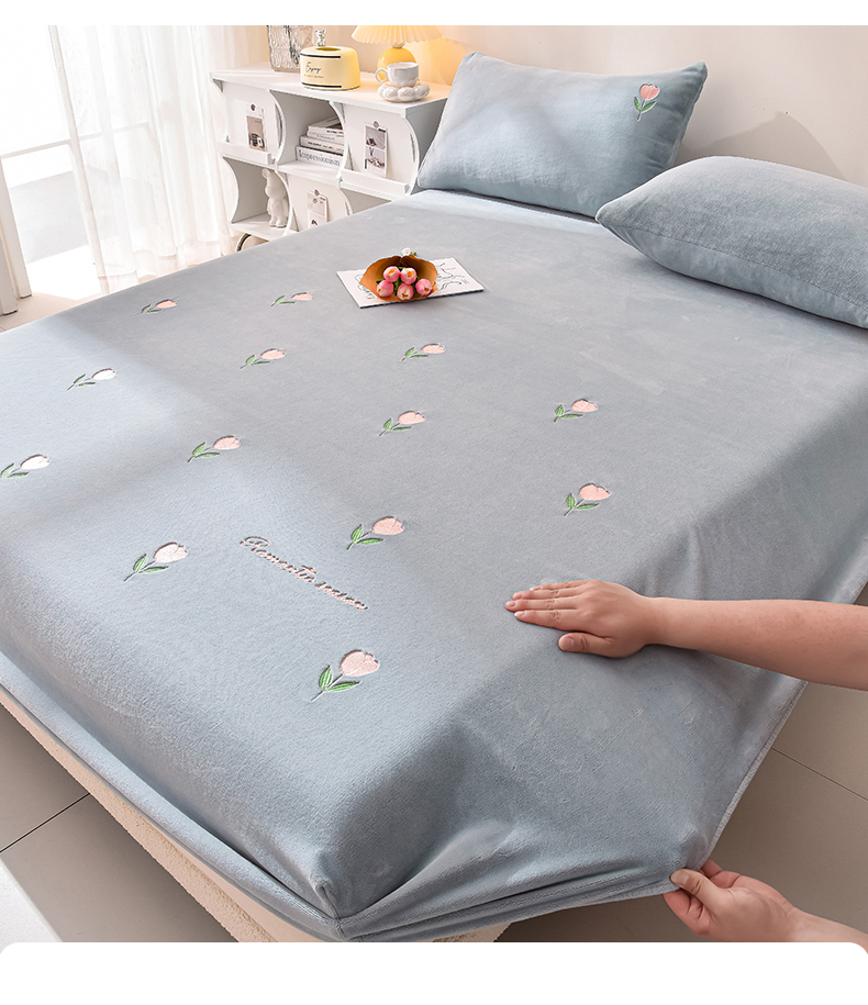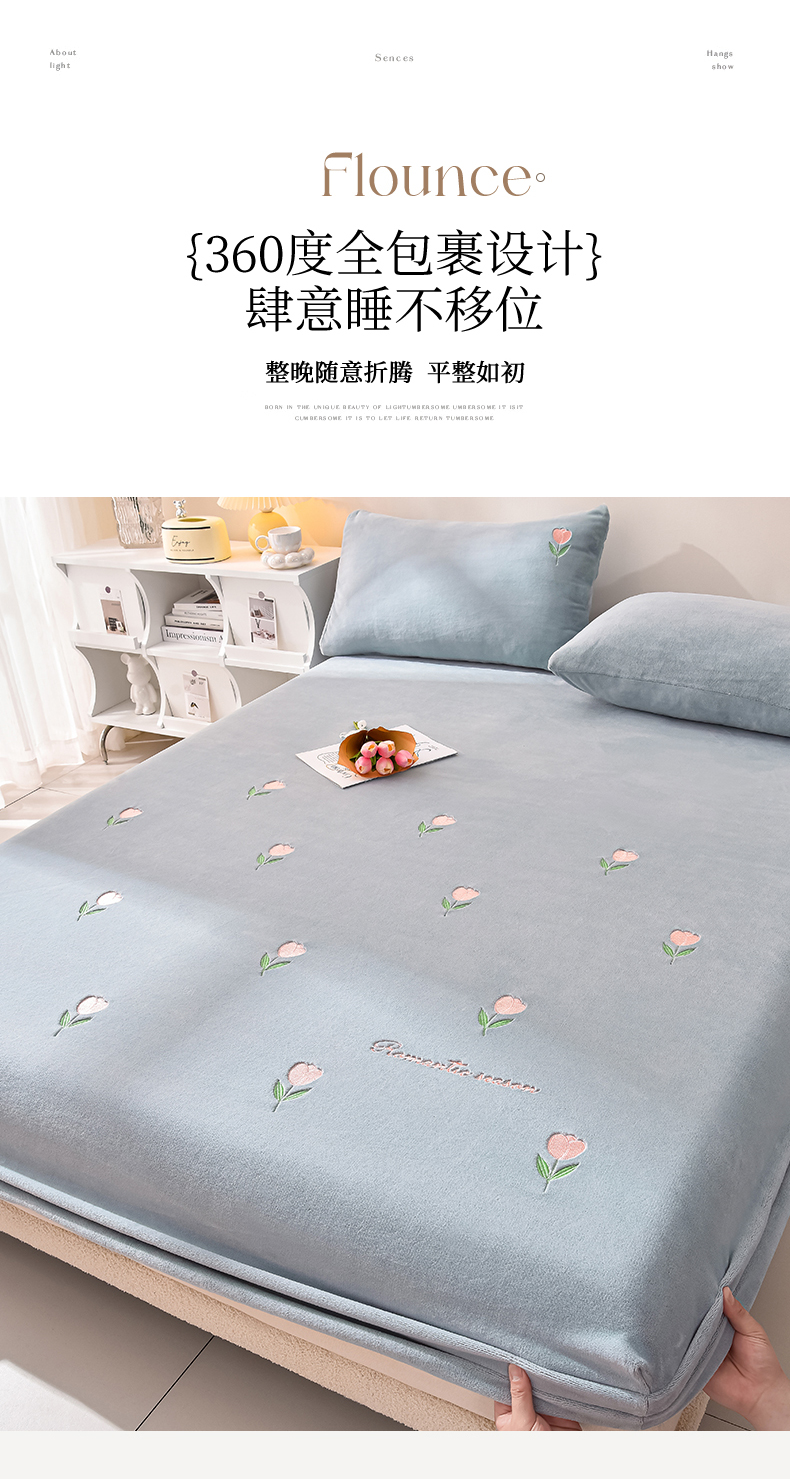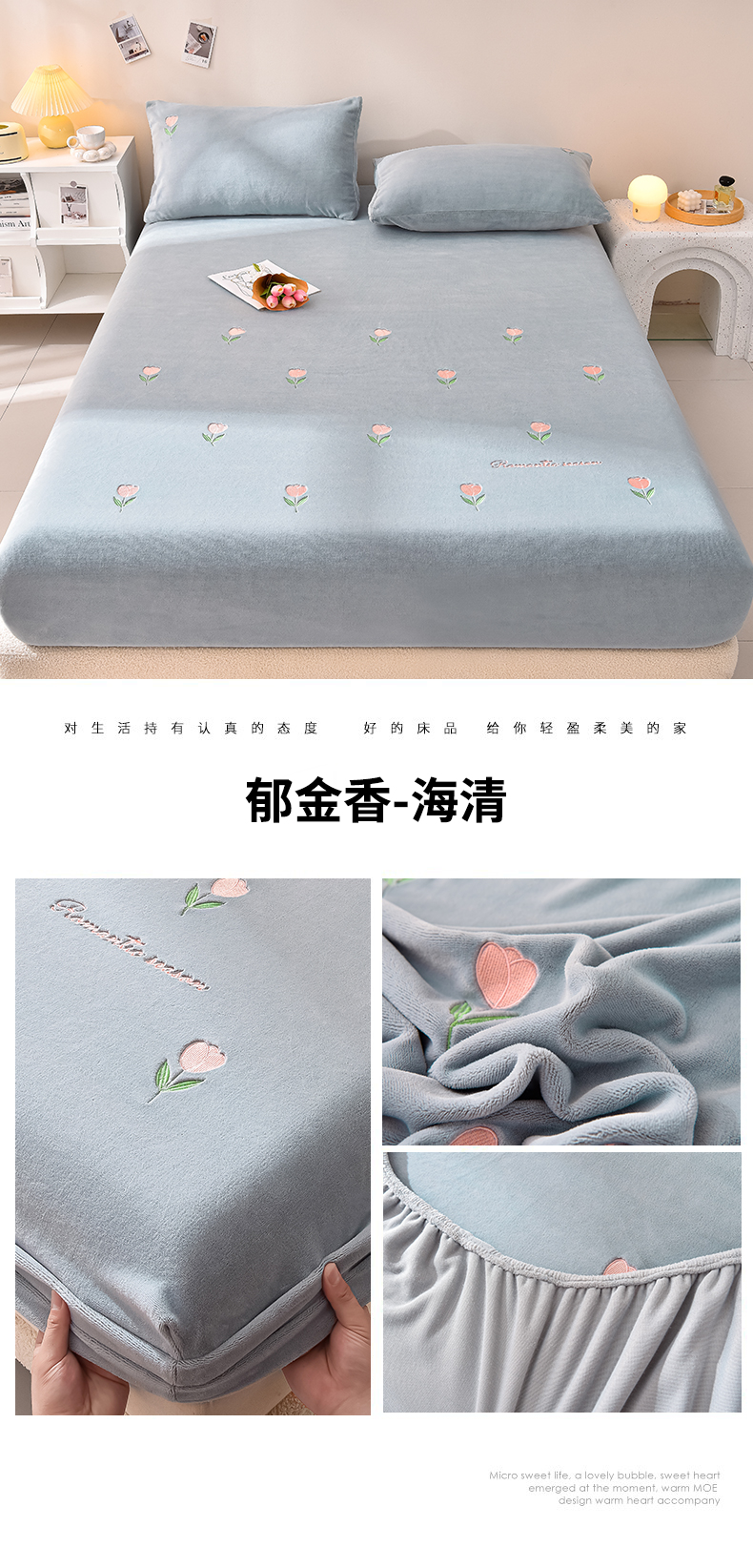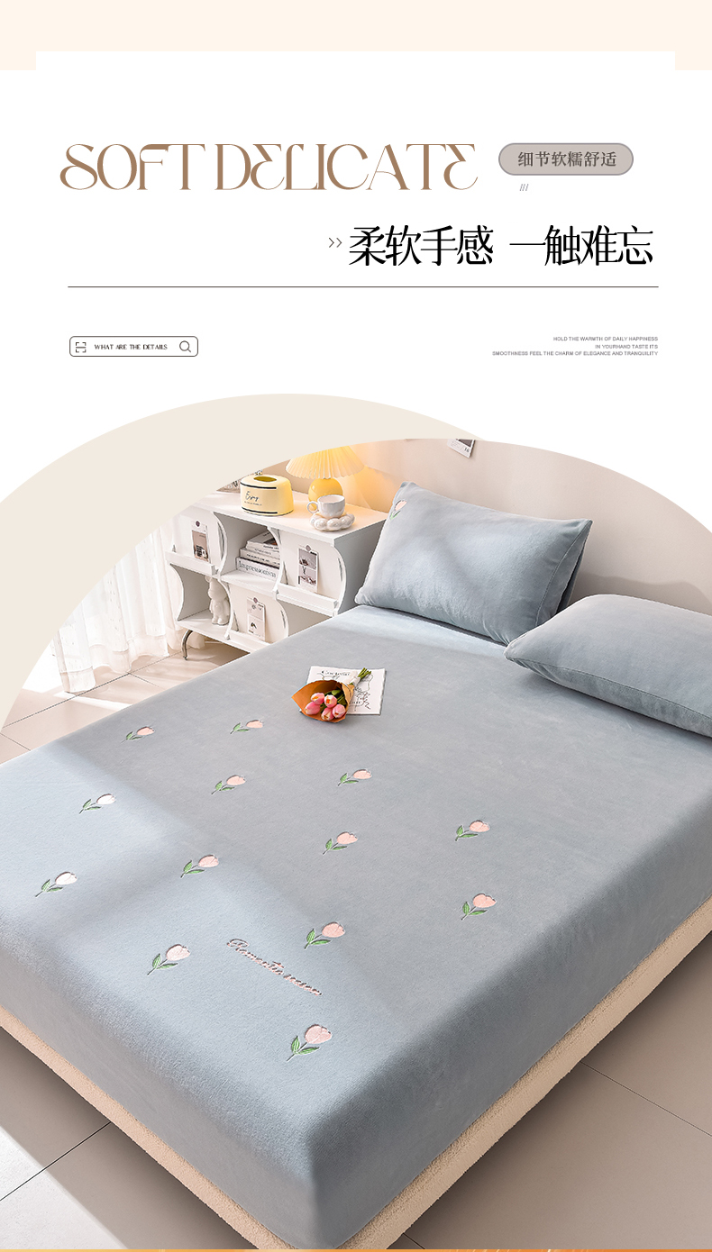 笙意家纺 2025新款A类牛奶绒花卉刺绣单床笠 郁金香-海清