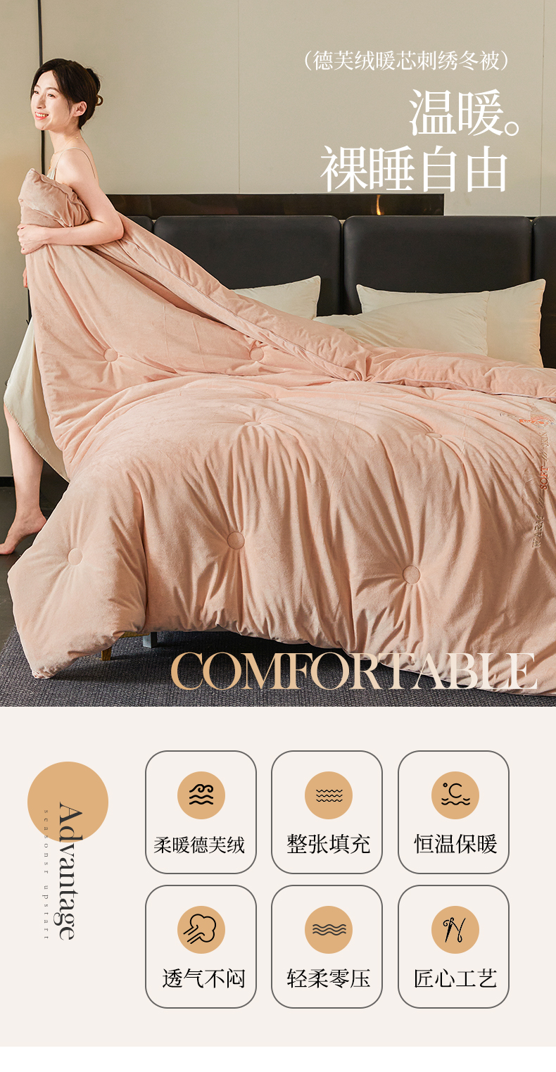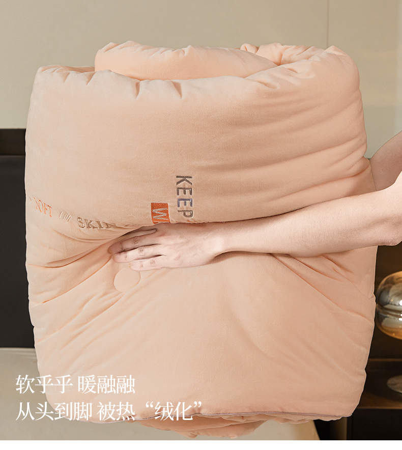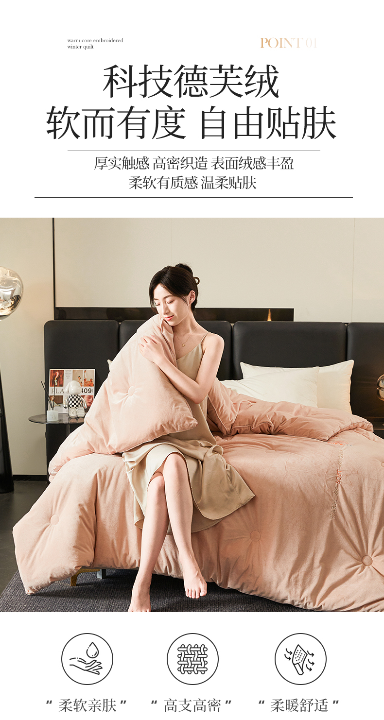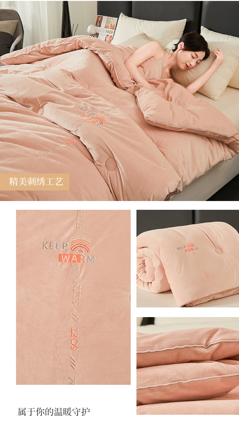 商品名称:歌历斯家纺 2024新款德芙绒冬被牛奶绒冬被绣花冬被被子被芯四季被科技冬被 暖玉色