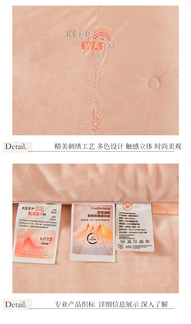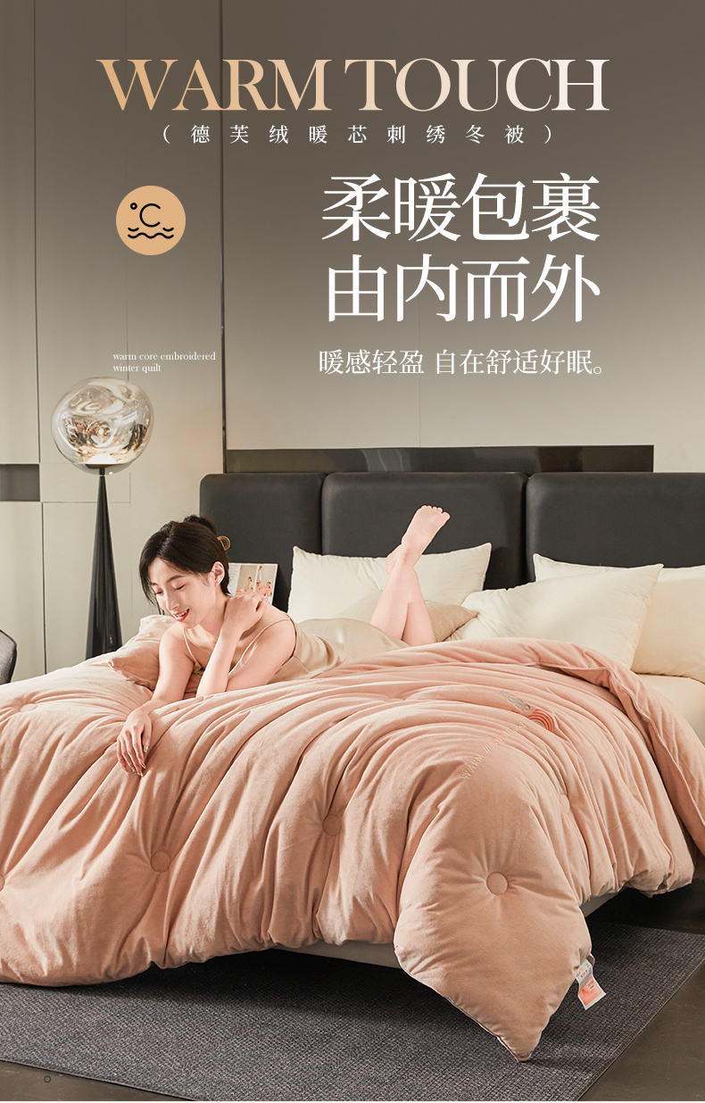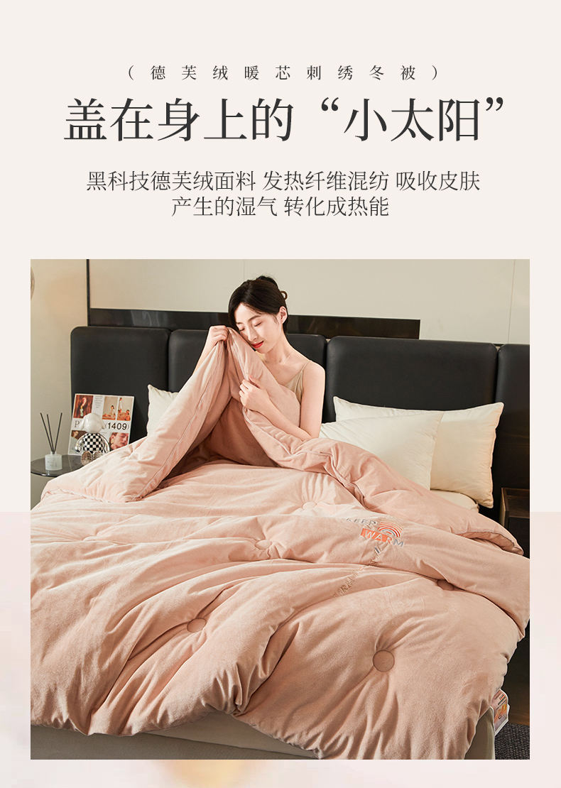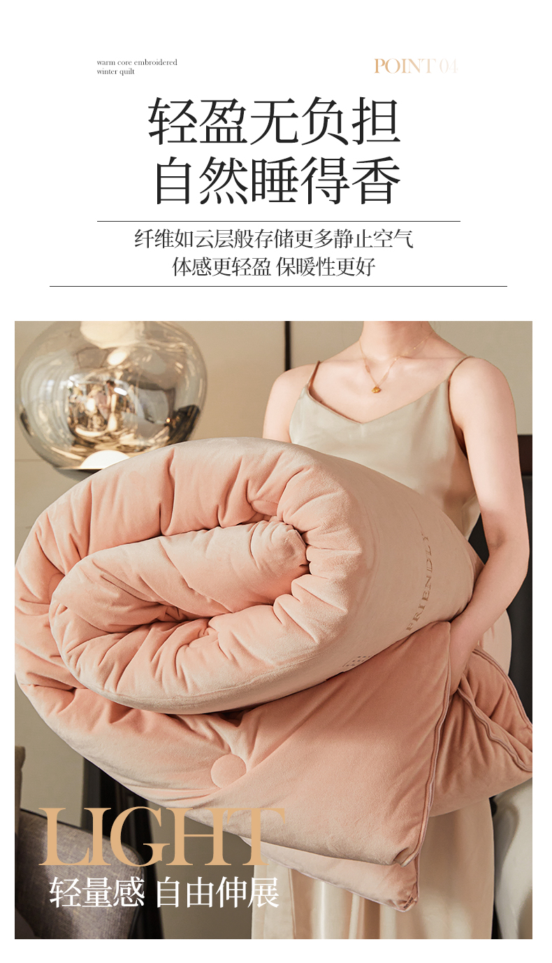 商品名称:歌历斯家纺 2024新款德芙绒冬被牛奶绒冬被绣花冬被被子被芯四季被科技冬被 暖玉色