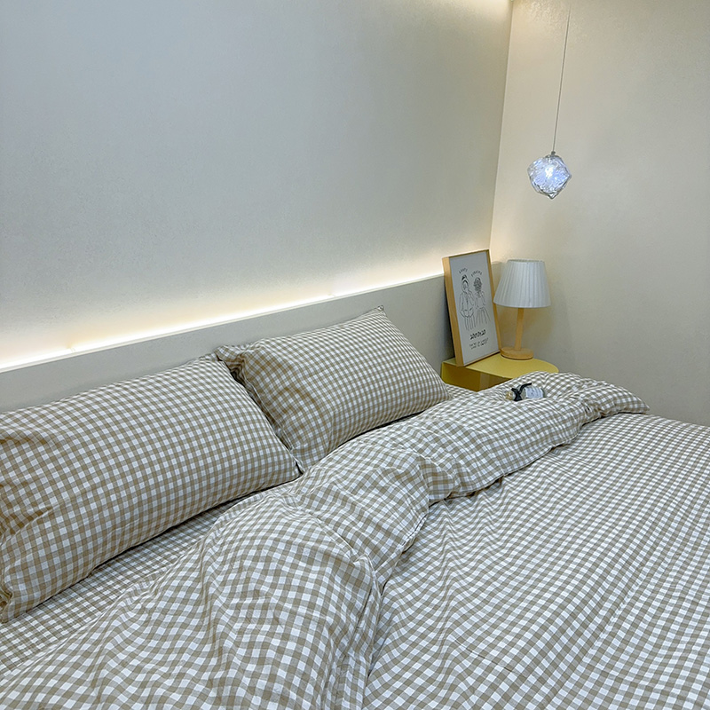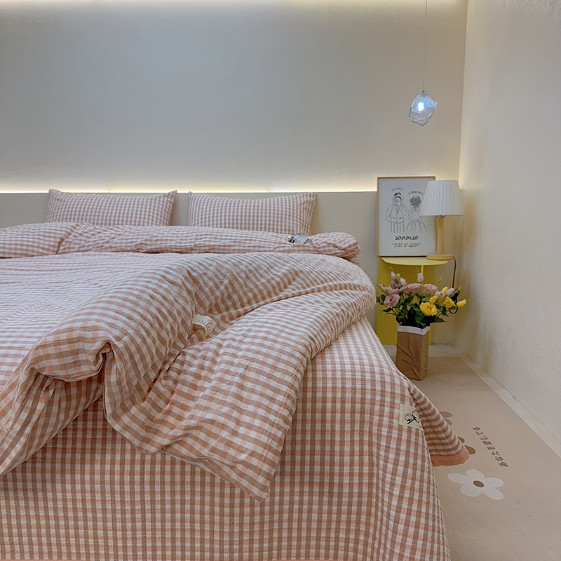 商品名称:2024新款水洗全棉条格床盖四件套 绿大格