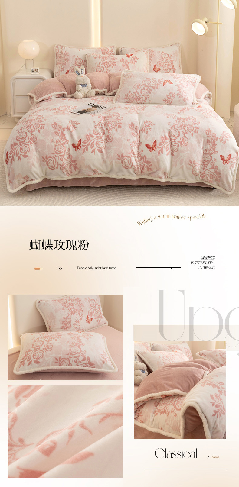 当前位置: 91家纺网 > 商品网购 > 床品套件 > 四件套 > 牛奶绒四件套 > 2024新款A类复古风加厚保暖绒四件套 古典花韵
