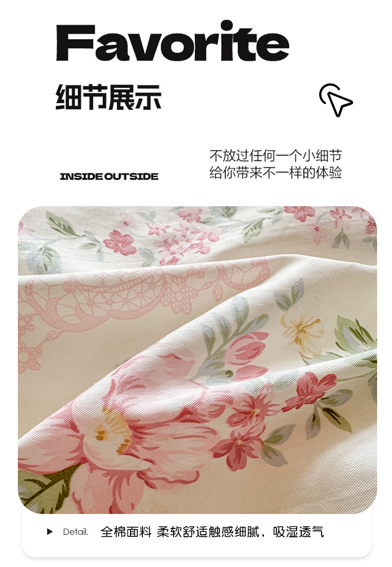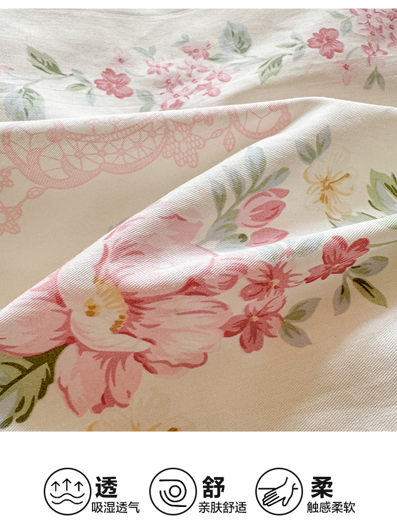 商品名称:清雅福 2024新款全棉13070印花单品系列-单被套 花梦初粉