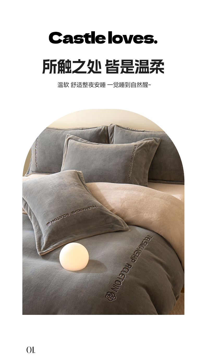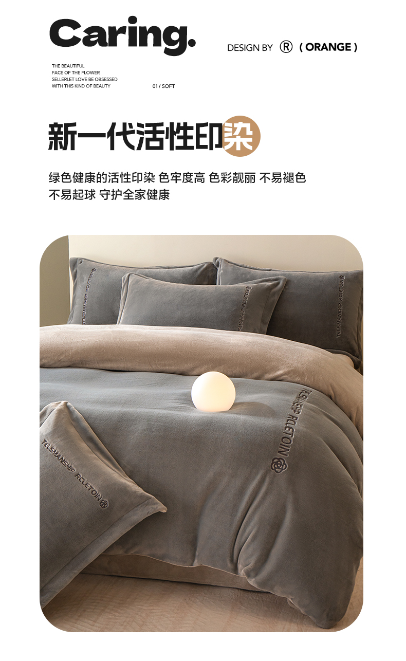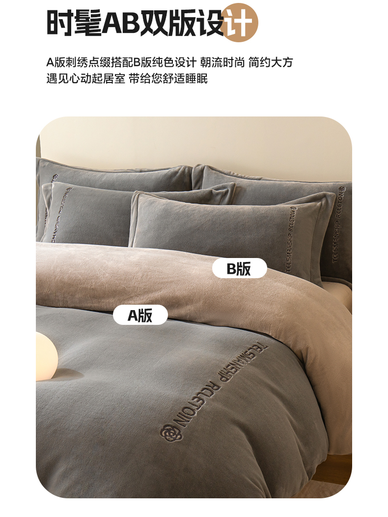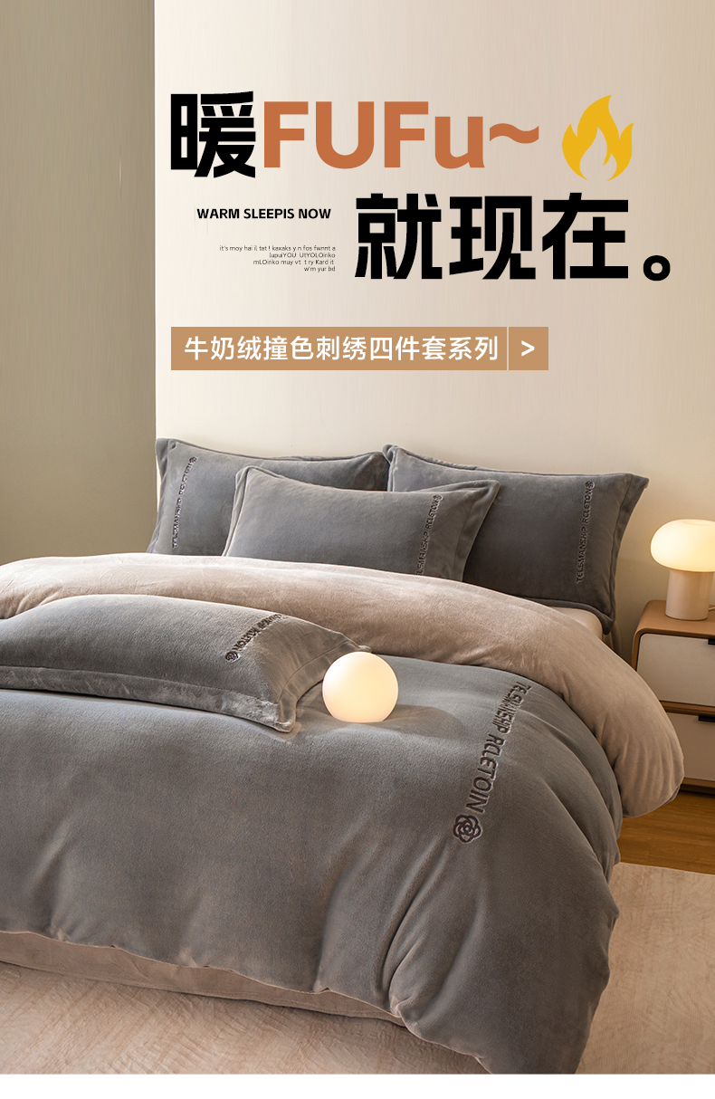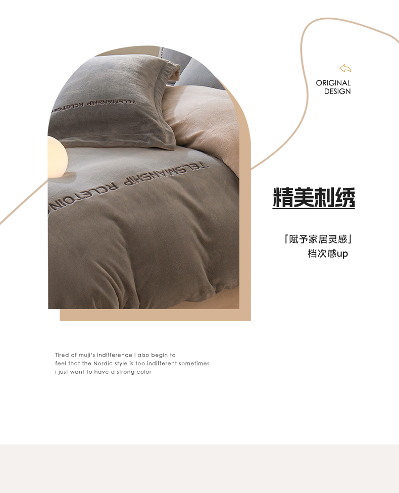商品名称:花愿(原花纪) 2025新款牛奶绒撞色刺绣四件套—泽西 经典灰+香草灰