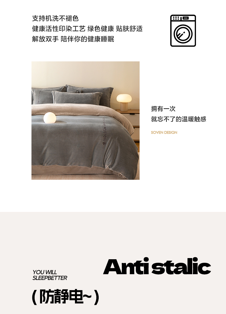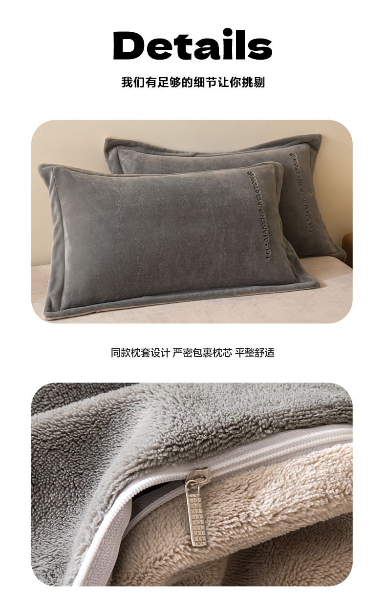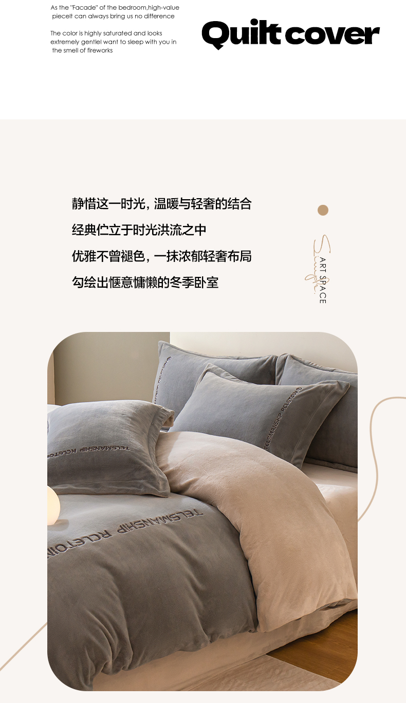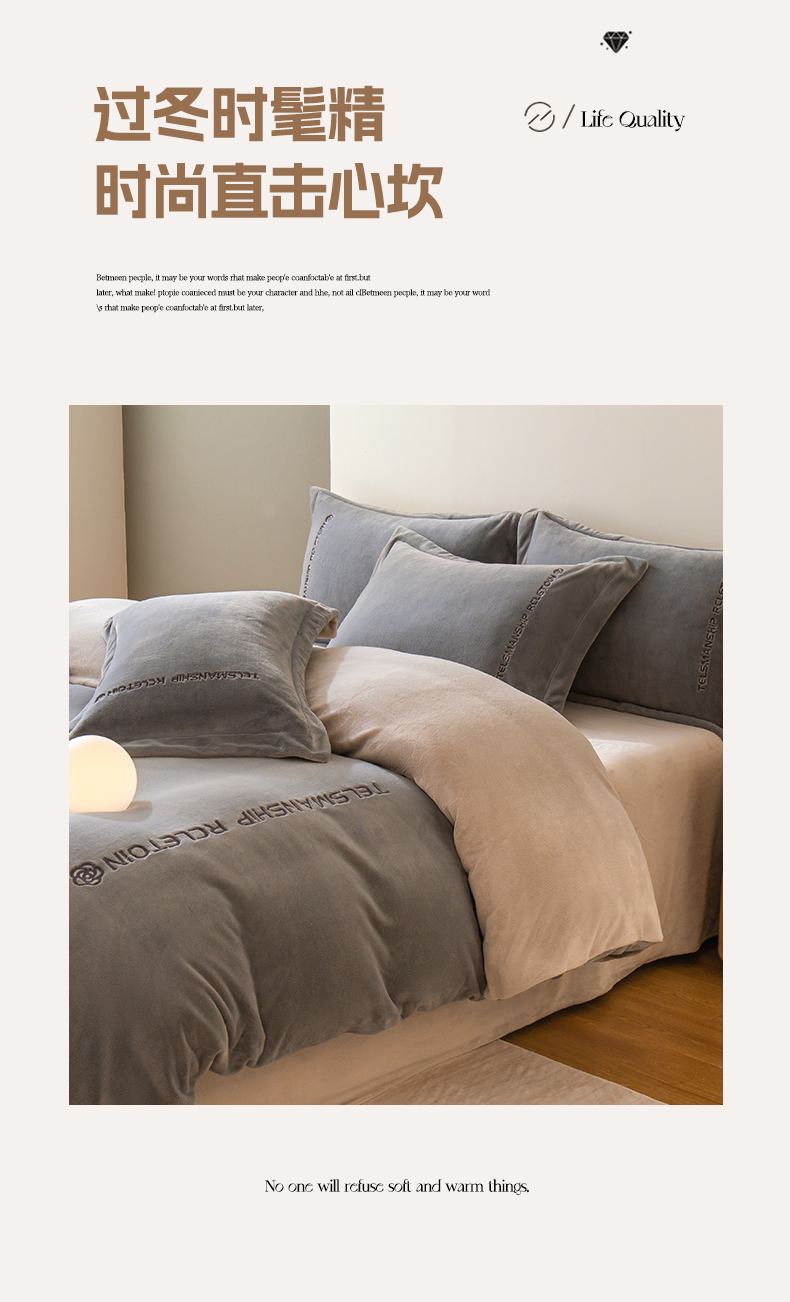 商品名称:花愿(原花纪) 2025新款牛奶绒撞色刺绣四件套—泽西 经典灰+香草灰