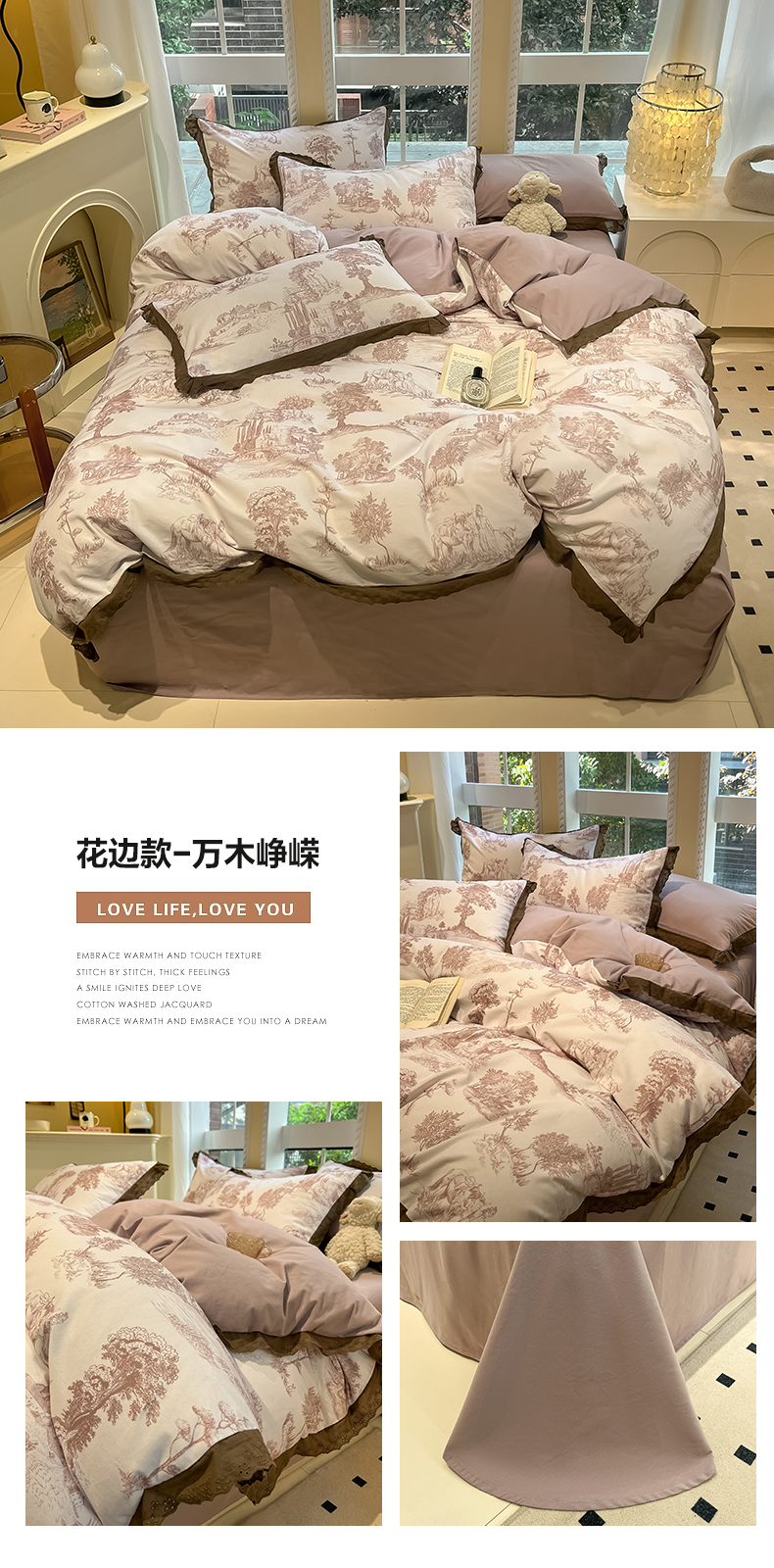 沐辰 2024新款A类全棉磨毛花边款四件套 花边款-万木峥嵘