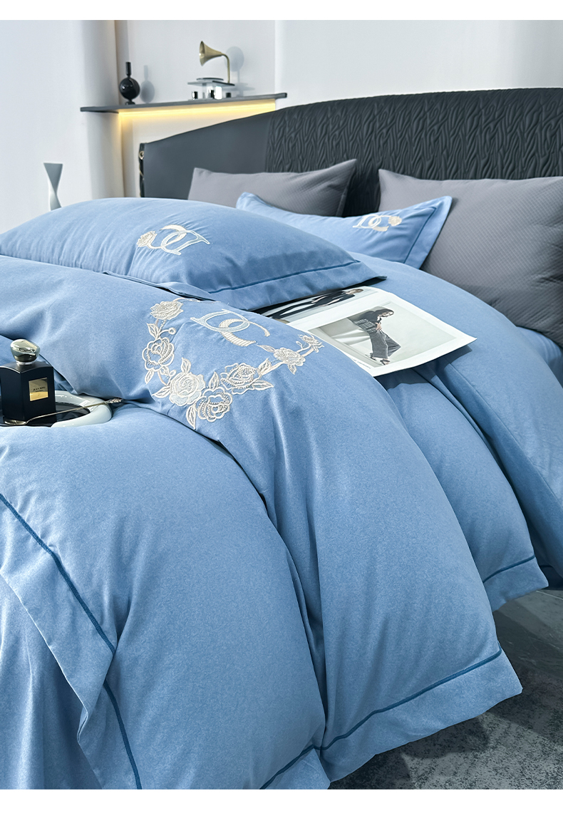 当前位置: 91家纺网 > 商品网购 > 床品套件 > 四件套 > 磨毛活性四件套 > 宜家坊 2024新款加厚肌理纹碳素磨毛刺绣四件套-邂逅系列 邂逅-典雅灰