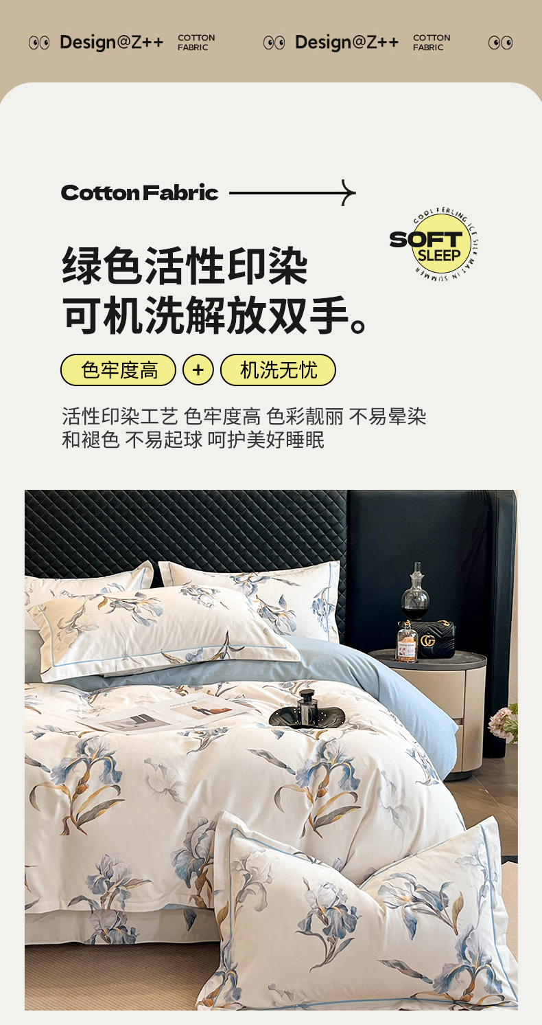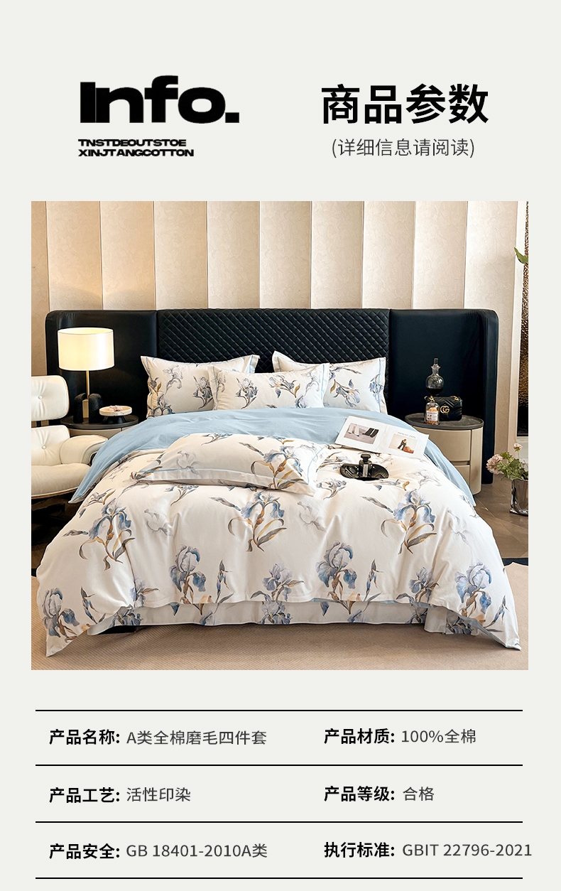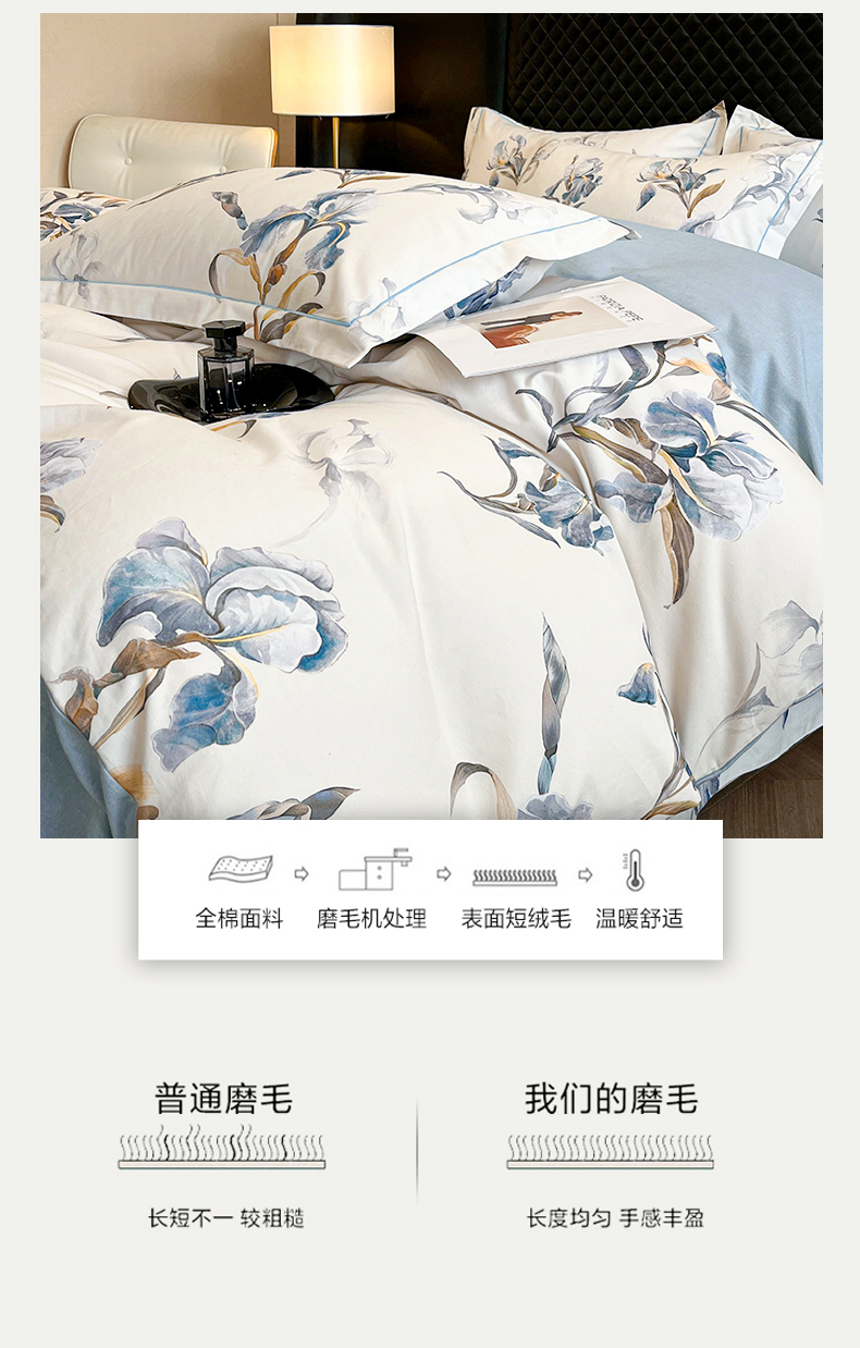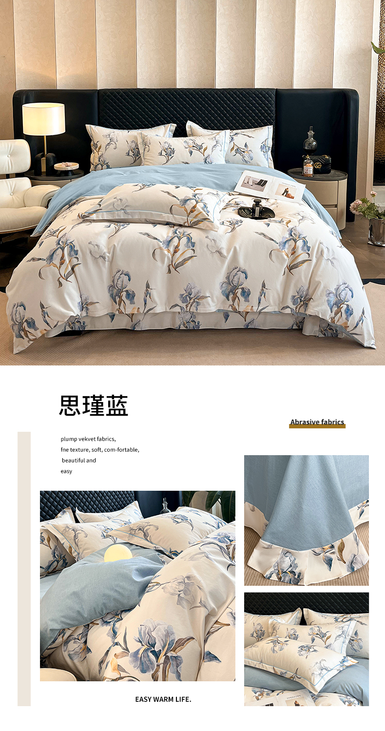 当前位置: 91家纺网 > 商品网购 > 床品套件 > 四件套 > 普通磨毛四件套 > 大柏树 2025新款A类全棉磨毛印花四件套 思瑾蓝