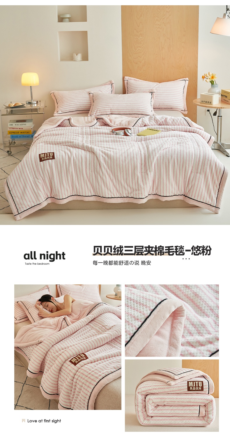 当前位置: 91家纺网 > 商品网购 > 毛毯休闲毯绒毯 > 毛毯 > 晨曦家纺 2024新款加厚三层贝贝绒牛奶绒夹棉毛毯 贝贝绒三层夹棉毛毯-悠粉