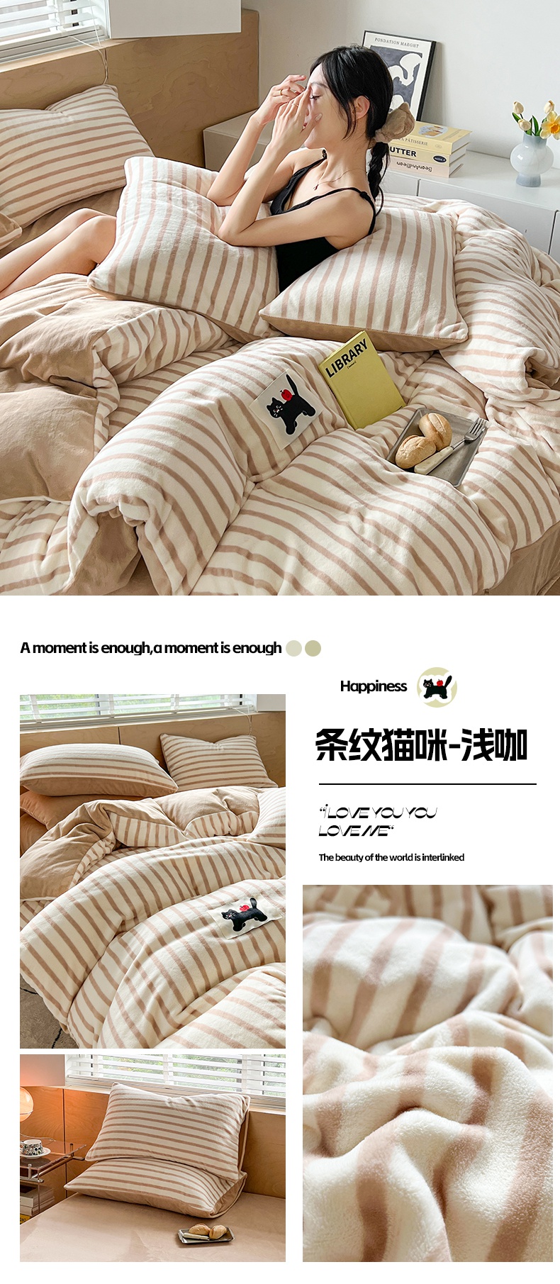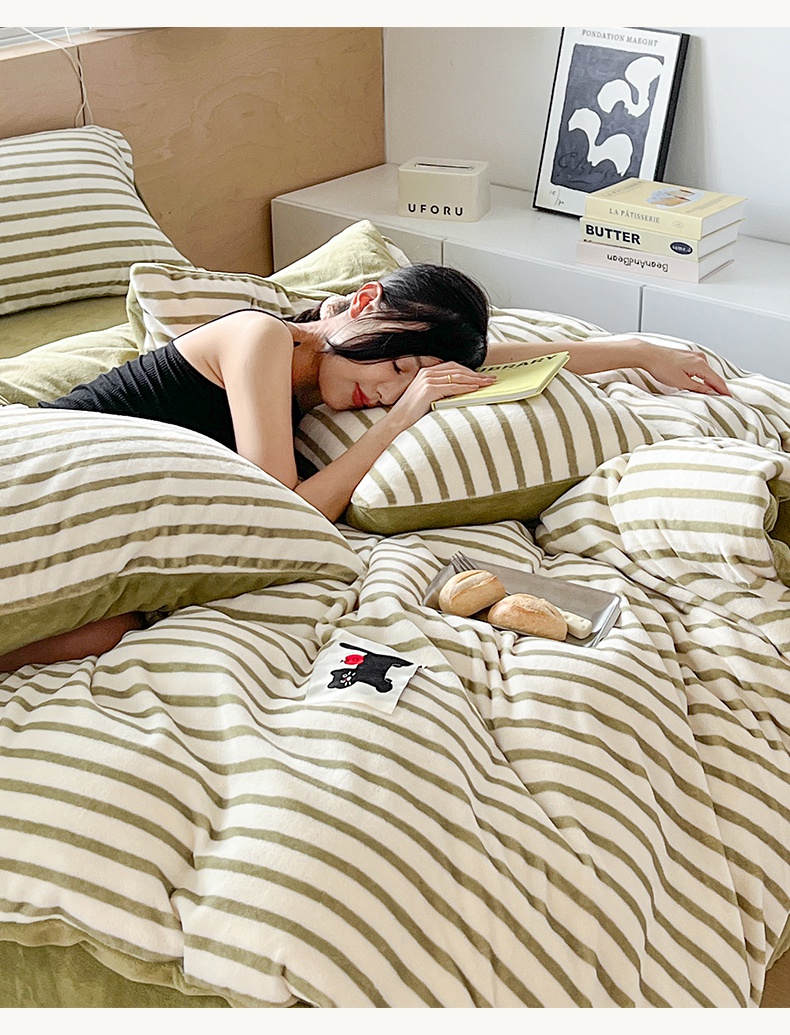 当前位置: 91家纺网 > 商品网购 > 床品套件 > 四件套 > 牛奶绒四件套 > 晨曦家纺 2024新款加厚无印风牛奶绒四件套 条纹猫咪-深咖