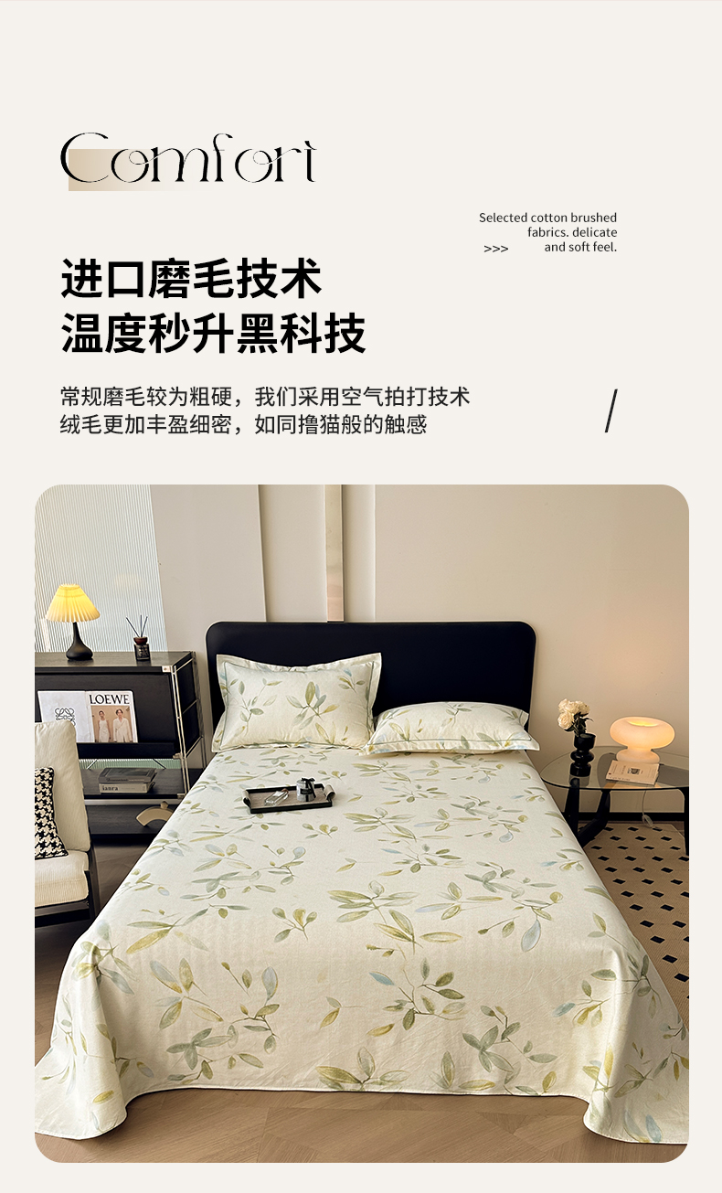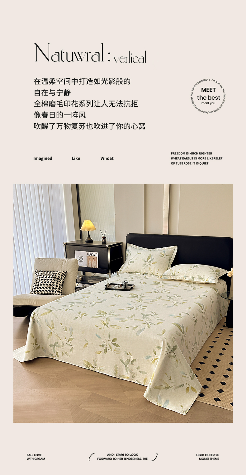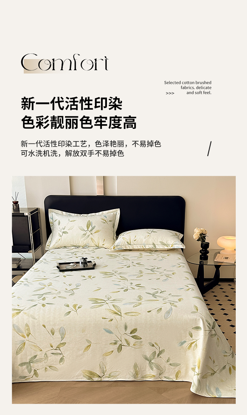 商品名称:大柏树 2025新款A类全棉磨毛印花单床单 乐莹米