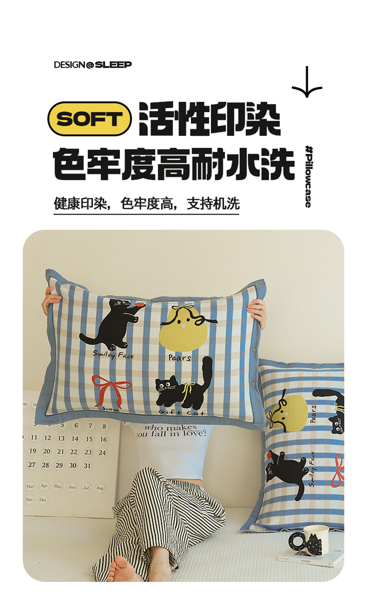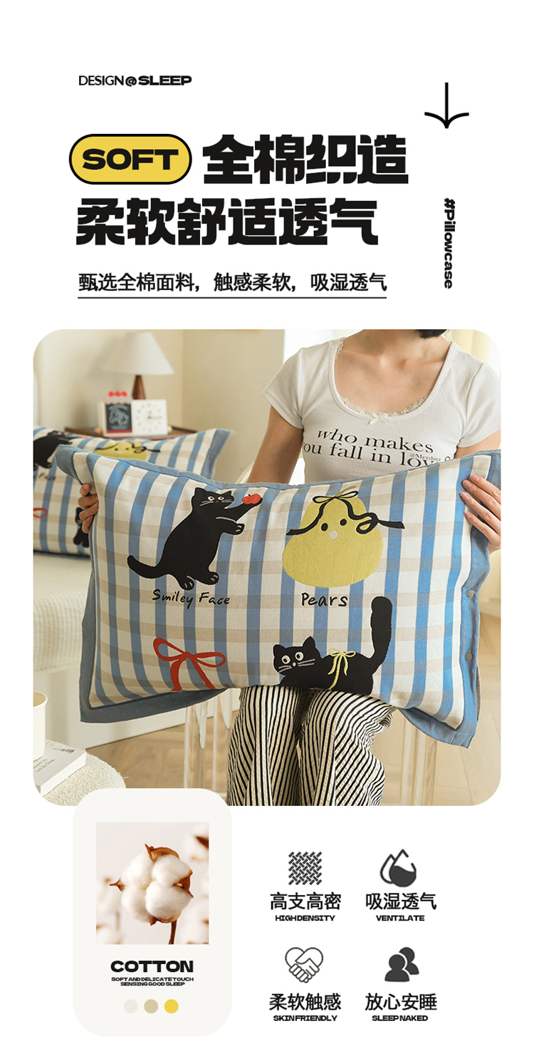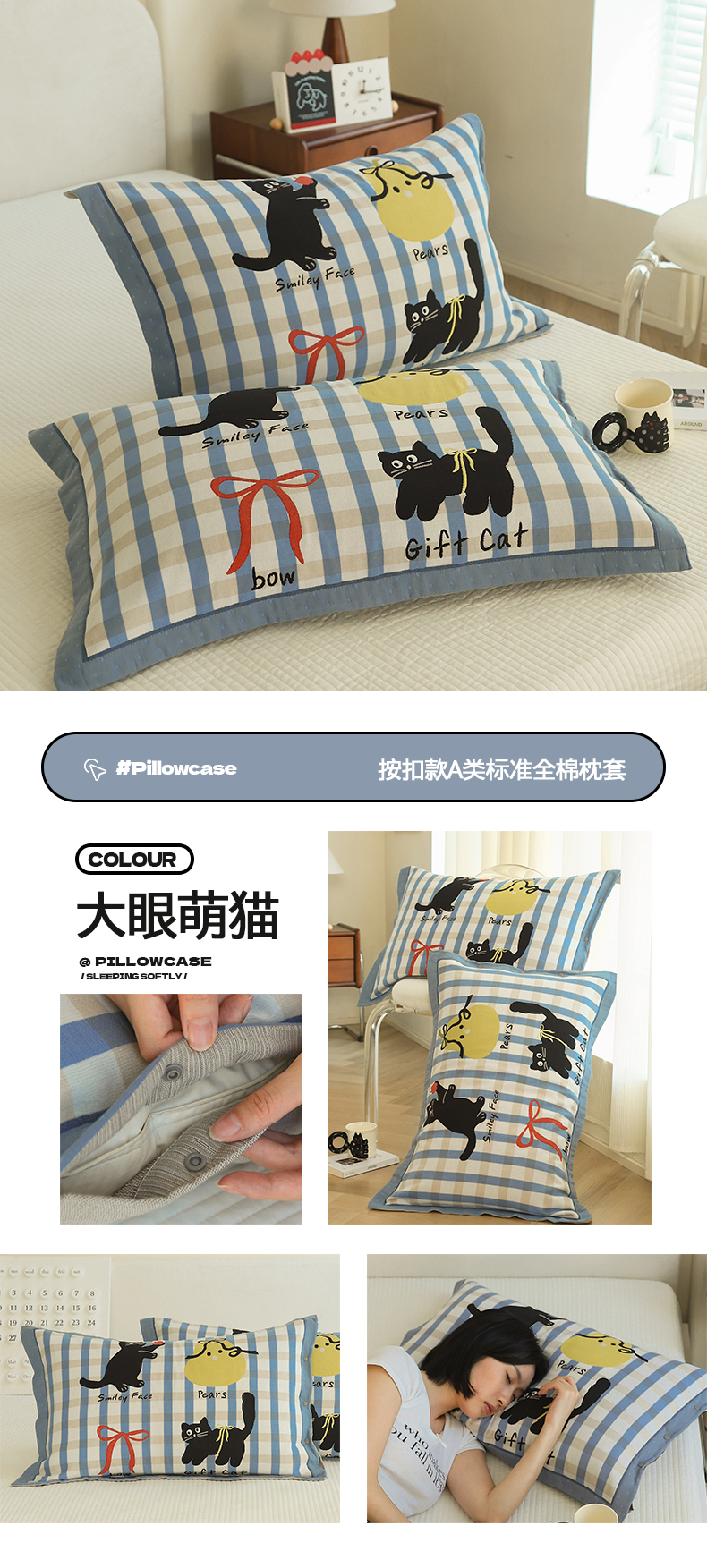 商品名称:2024新款全棉四层纱布枕套一对装纽扣款枕套 大眼萌猫