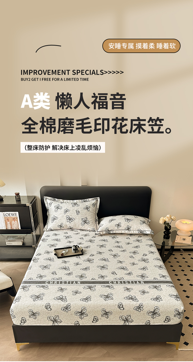 大柏树 2025新款A类全棉磨毛印花单床笠 淡雅年华