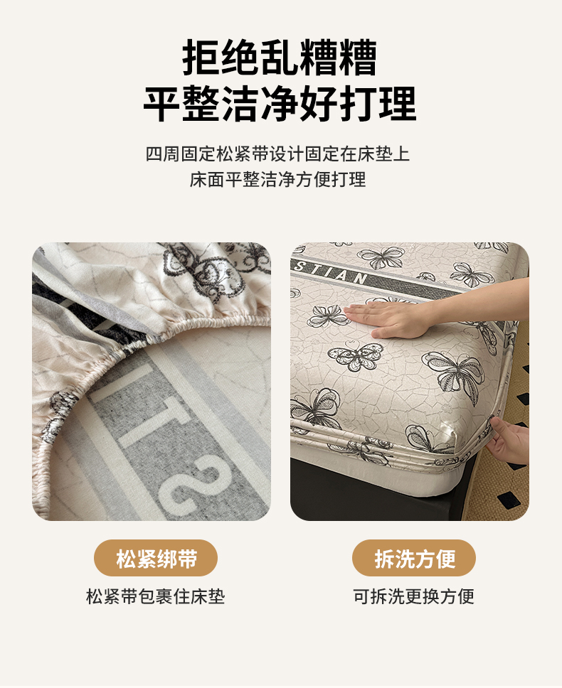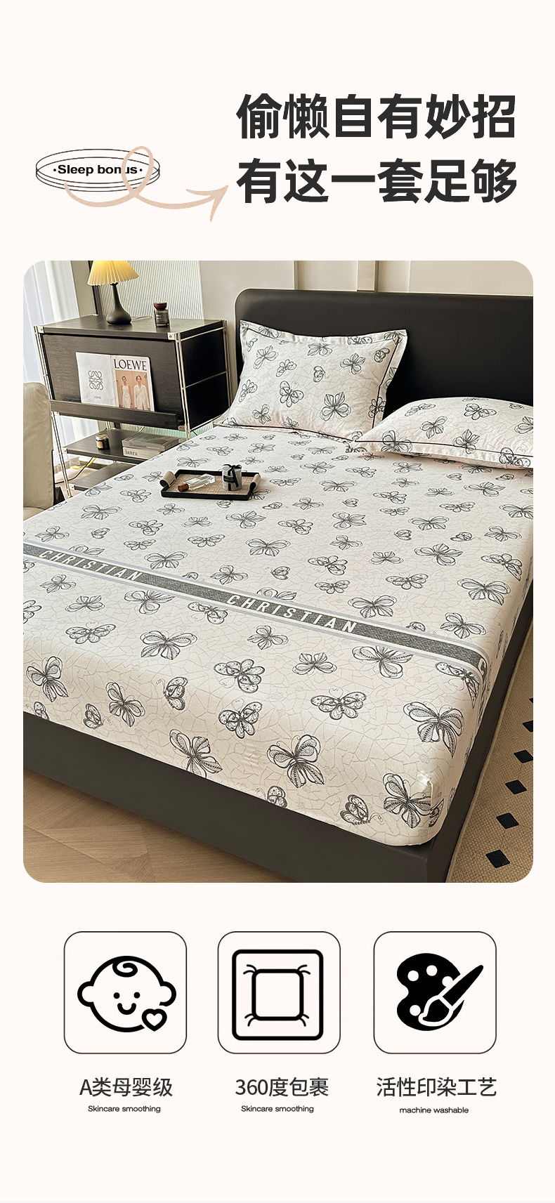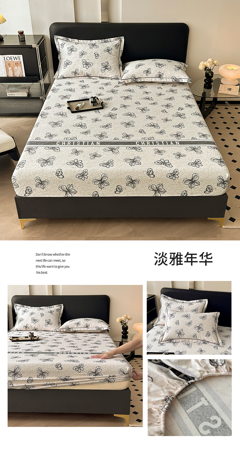 商品名称:大柏树 2025新款A类全棉磨毛印花单床笠 淡雅年华